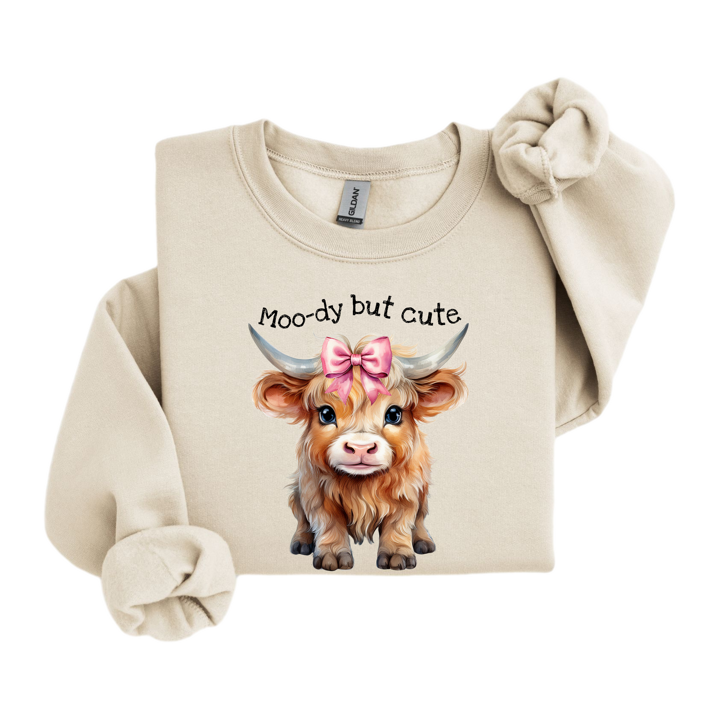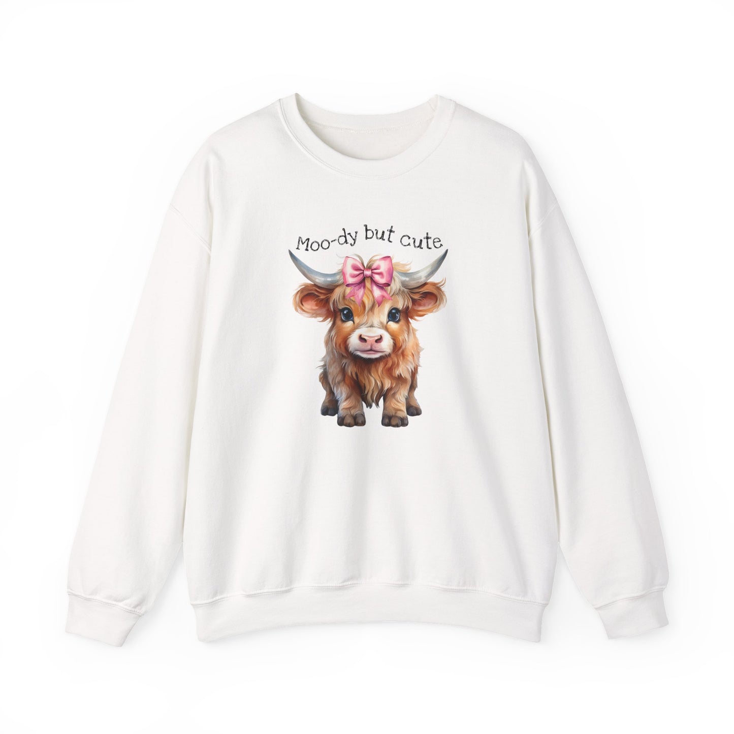 Moo-dy But Cute Highland Cow With Bow Crewneck Sweatshirt
