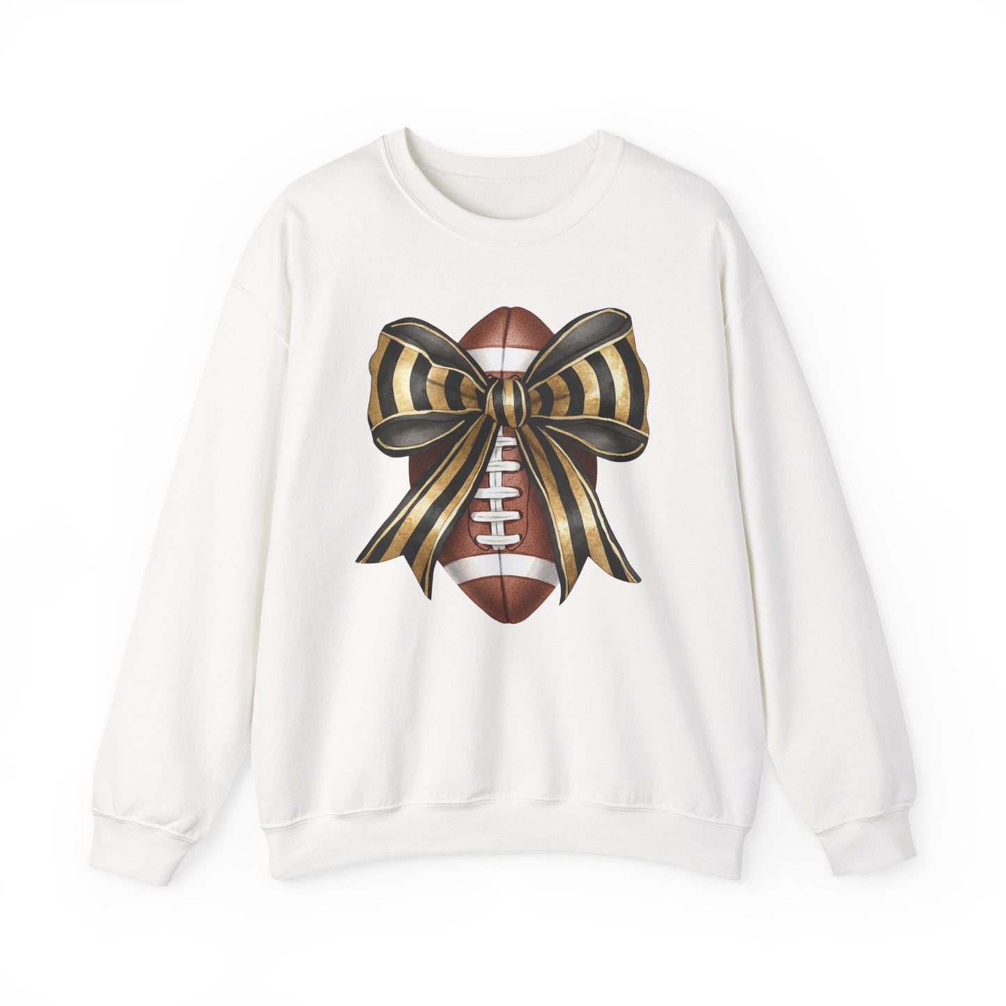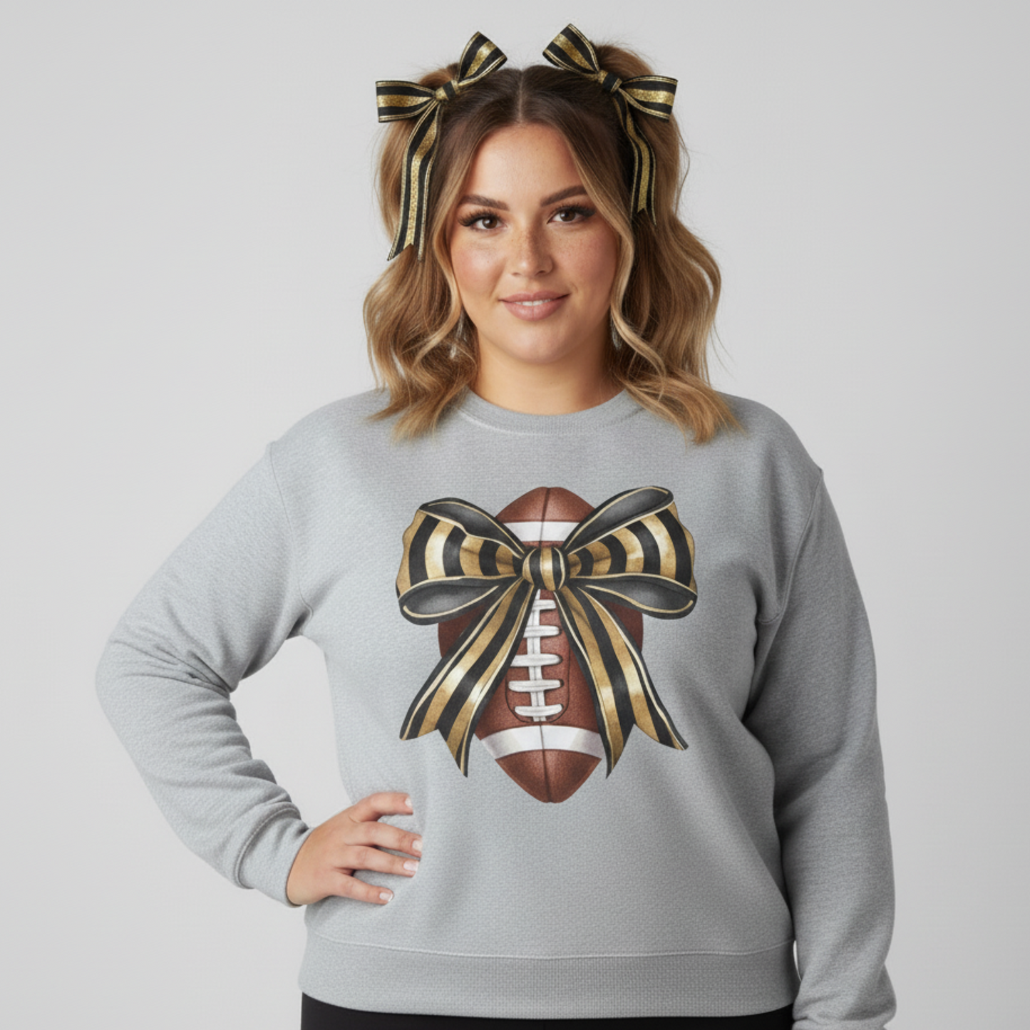 Black & Gold Bow Game Day Glam Football Crewneck Sweatshirt