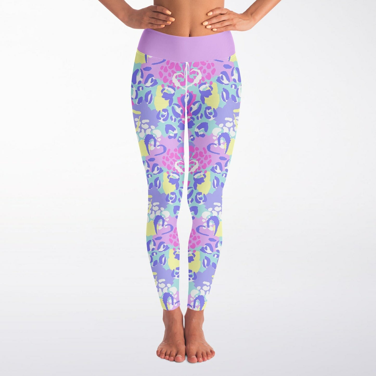 Pastel Leopard Heart Squat Proof Leggings – High-Waisted Workout & Gym Leggings