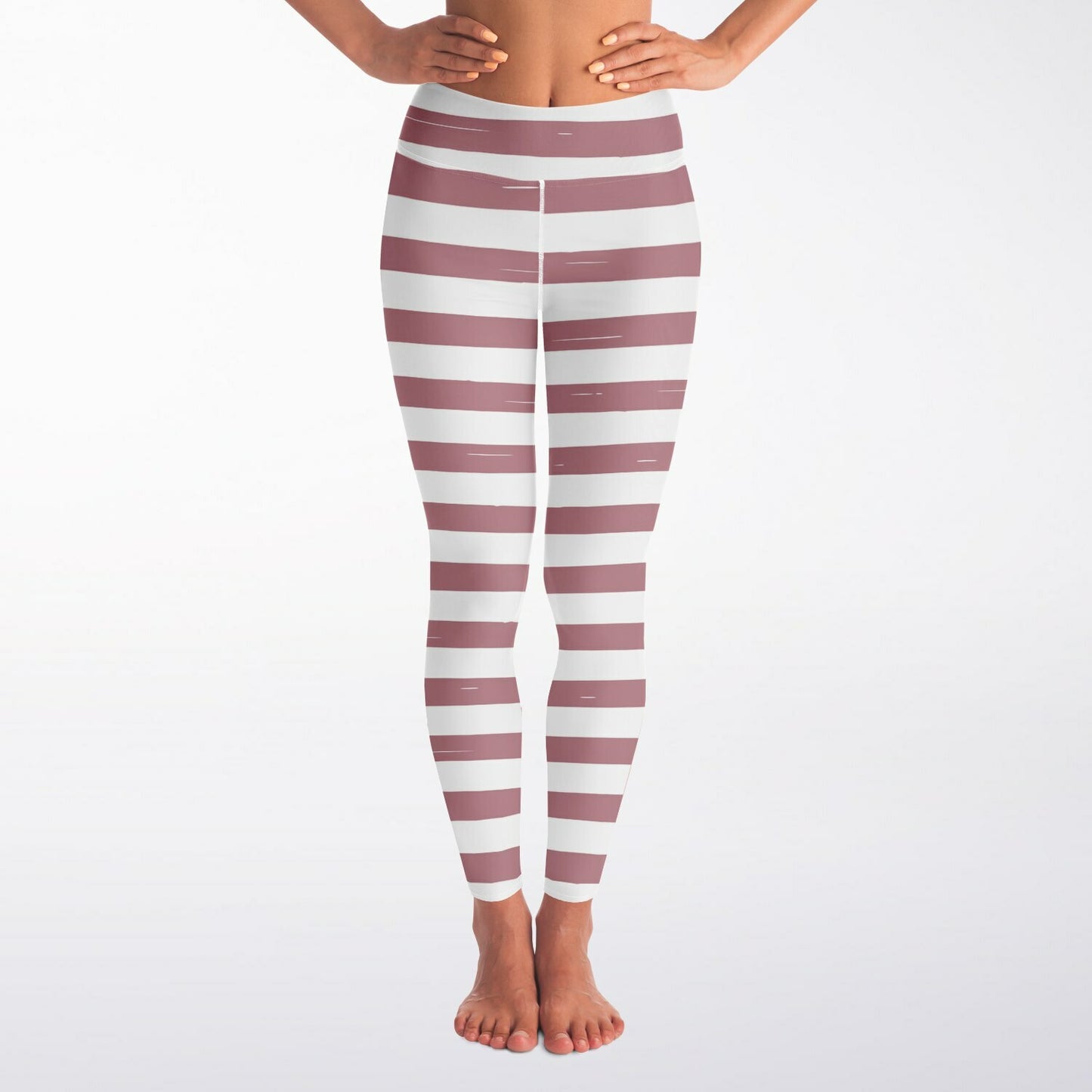 Muted Purple Striped Squat Proof Yoga Leggings - High-Waisted Workout & Gym Leggings (Matches Retro Flowers With Stripes Athletic Dance Hoodie)