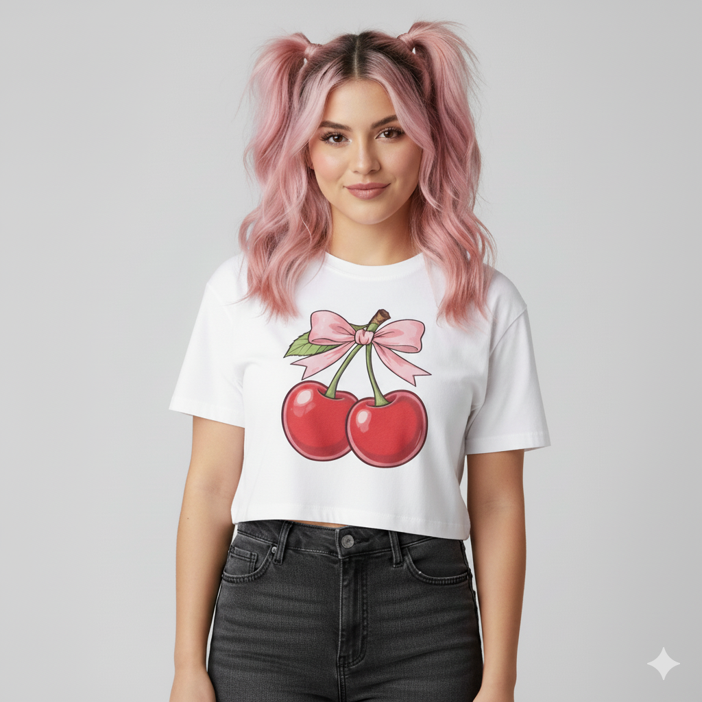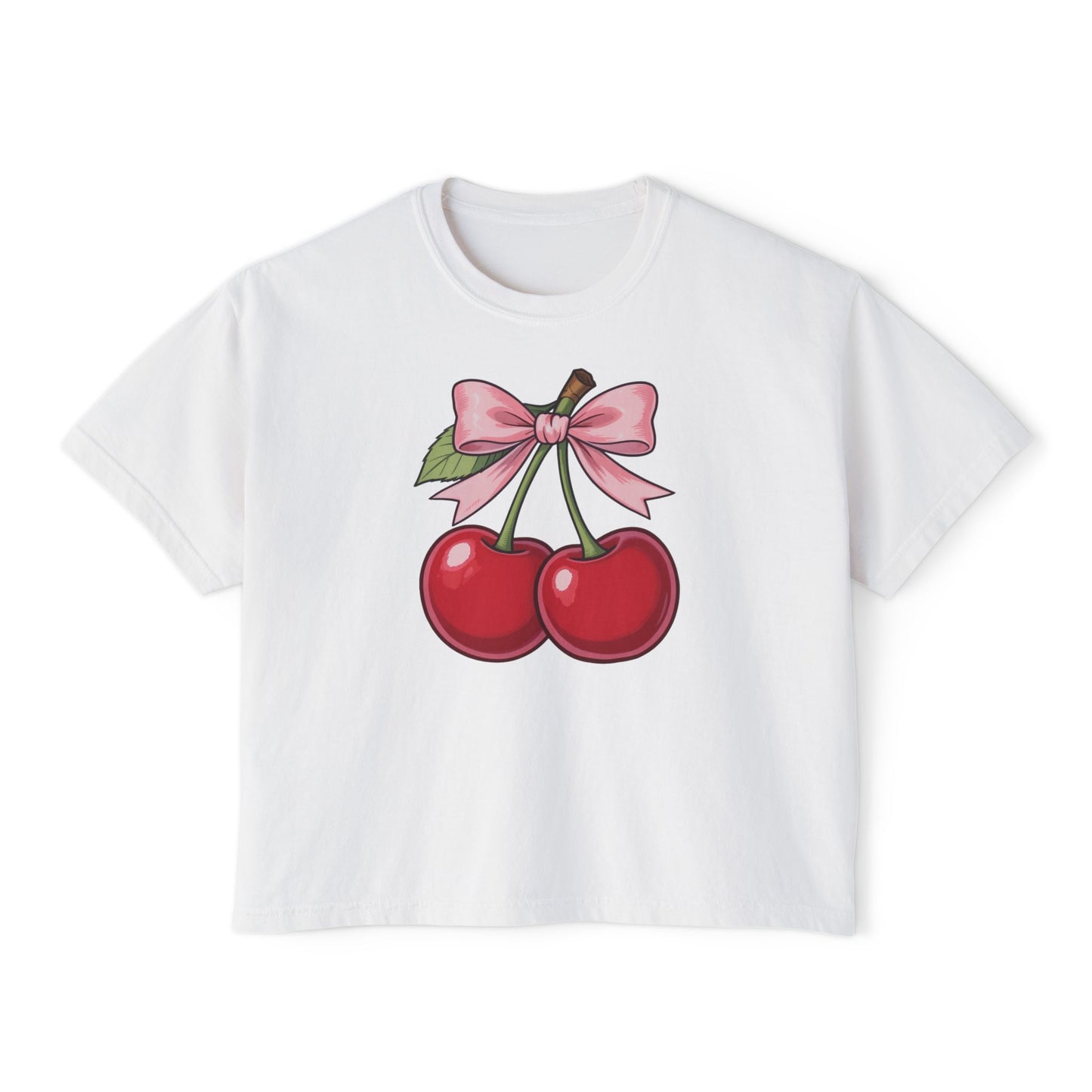 Pink Bow Cherries Graphic Tee – Comfort Colors Cropped Boxy Tee