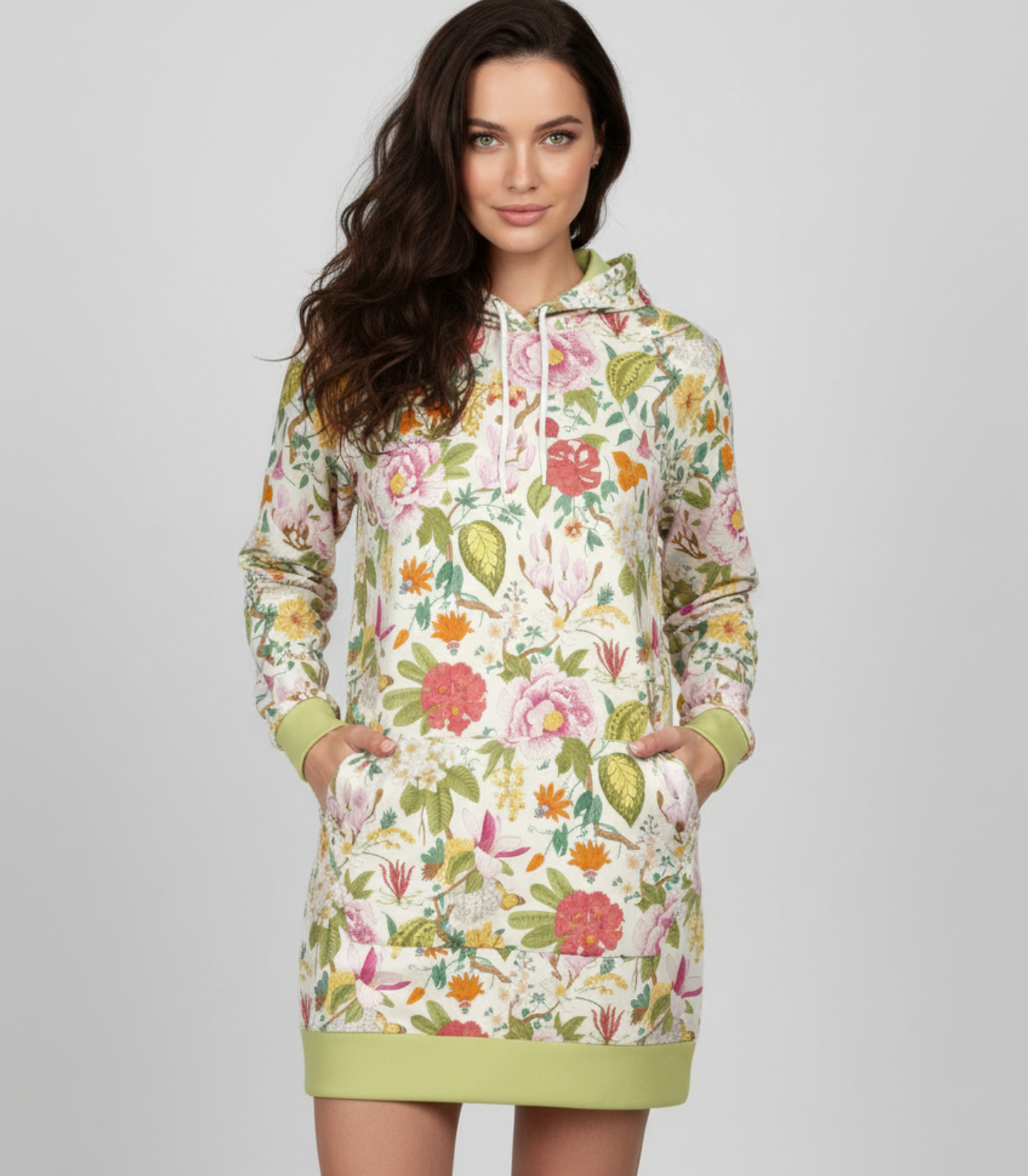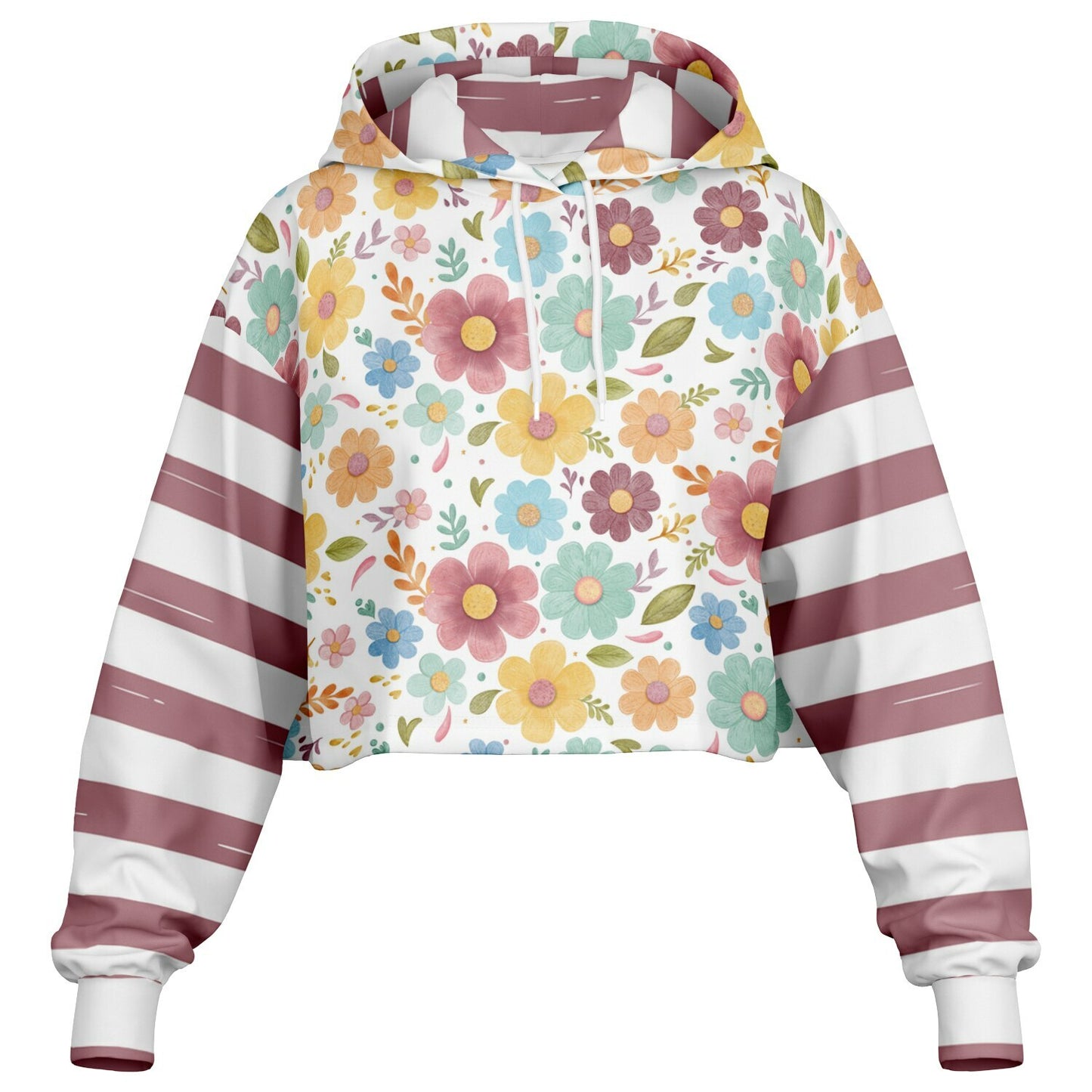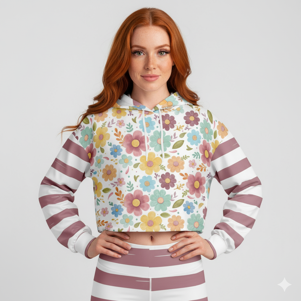 Retro Flowers With Muted Purple Stripes Athletic Dance Hoodie (Matches Muted Purple Striped Squat Proof Leggings)