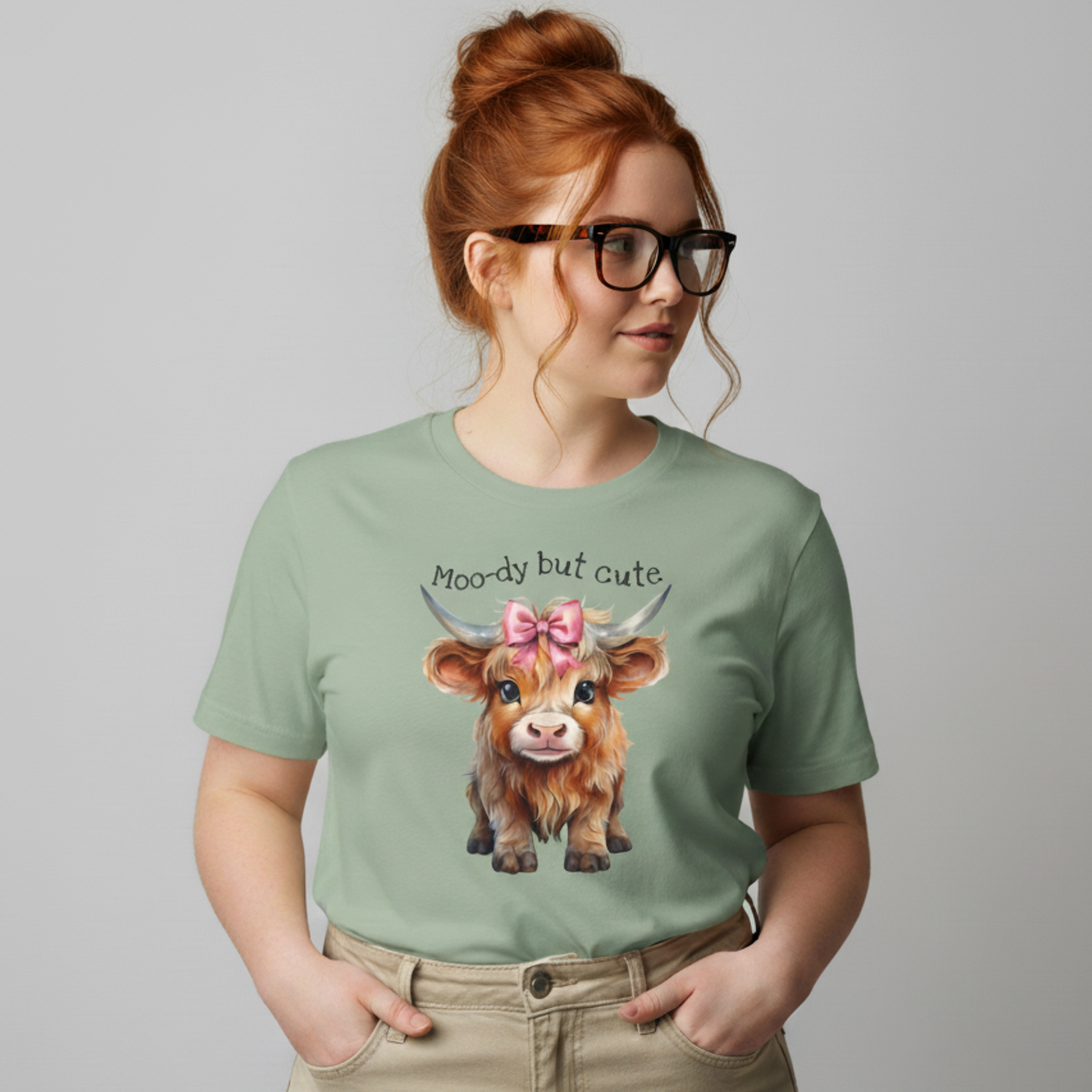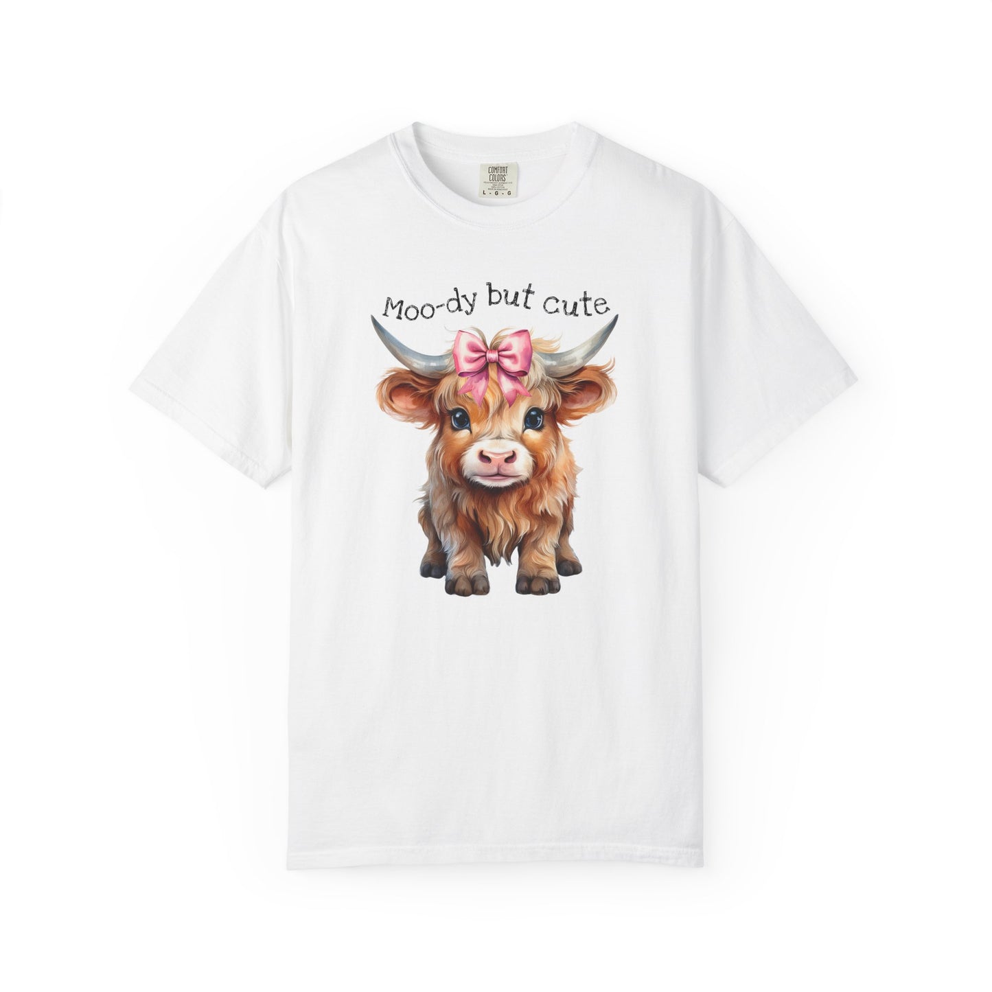 Moo-dy But Cute Highland Cow With Bow Comfort Colors Tee