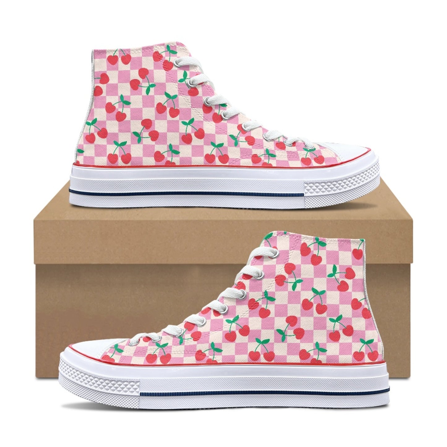 Cherry Gingham Retro High-Top Canvas Sneakers