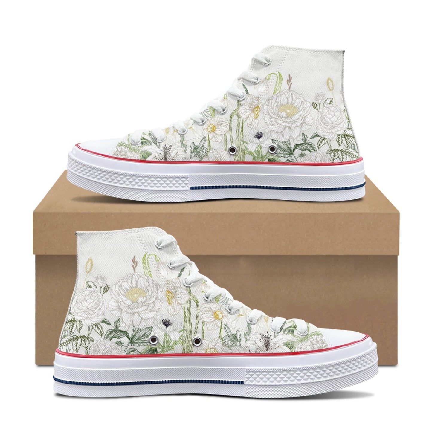 Botanical Bloom Retro High-Top Canvas Sneakers