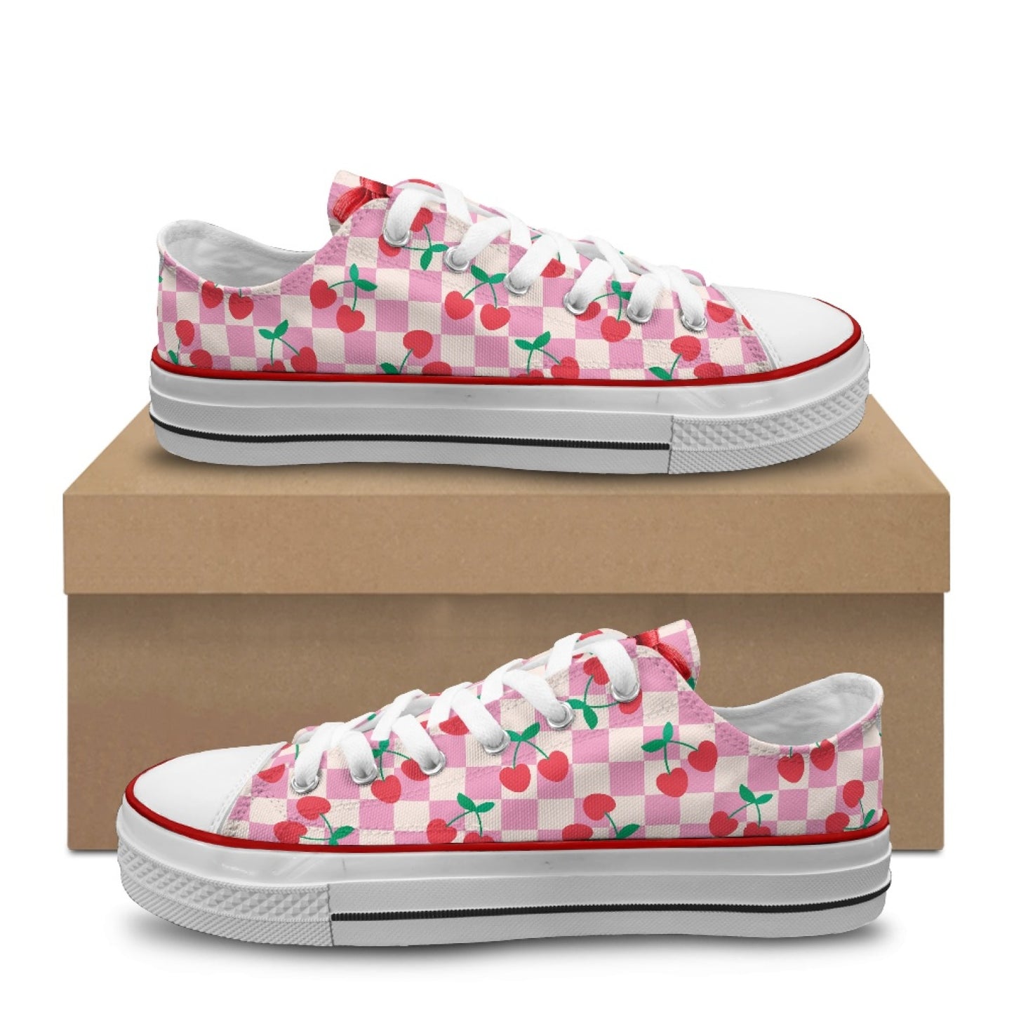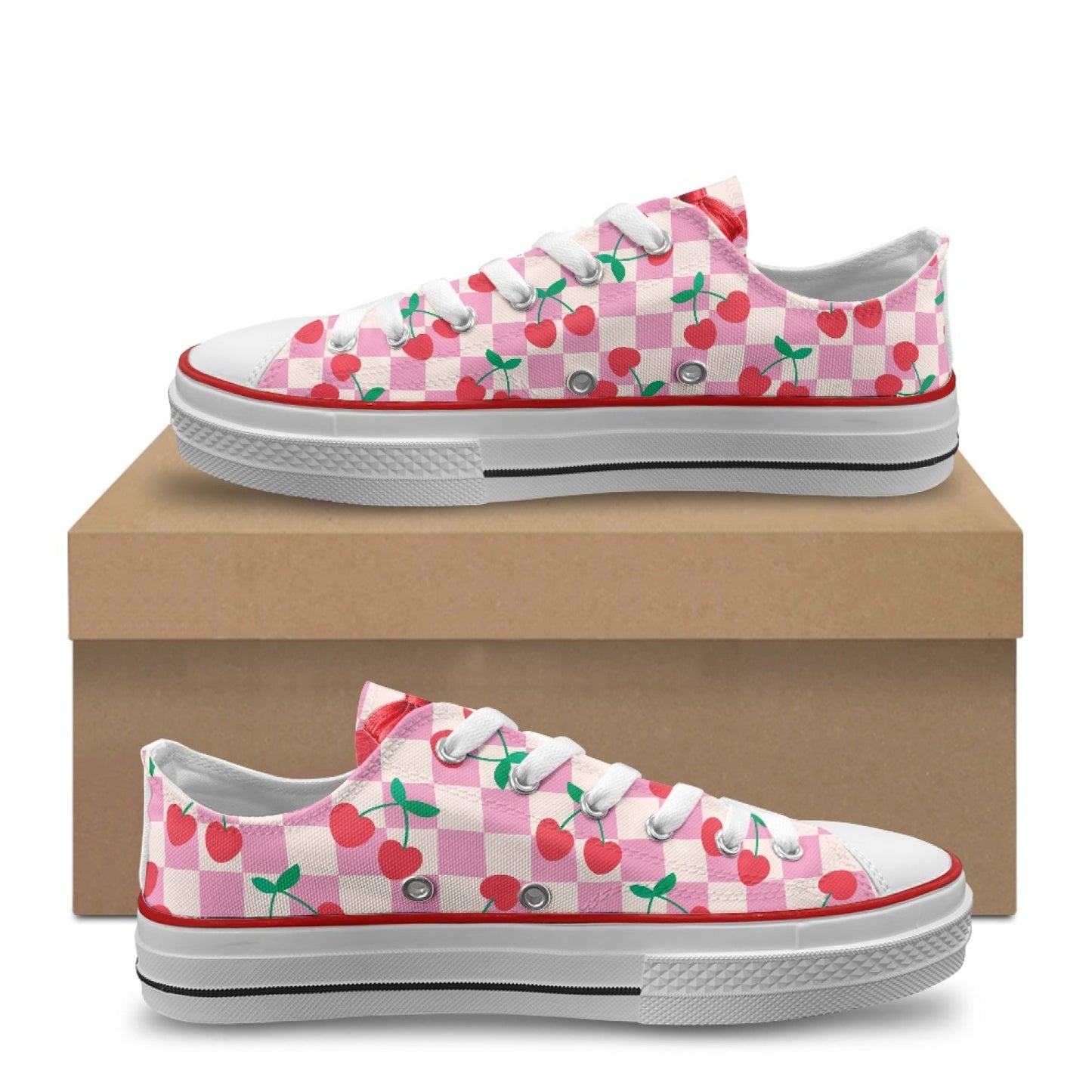 Cherry Gingham Retro Low-Top Canvas Sneakers