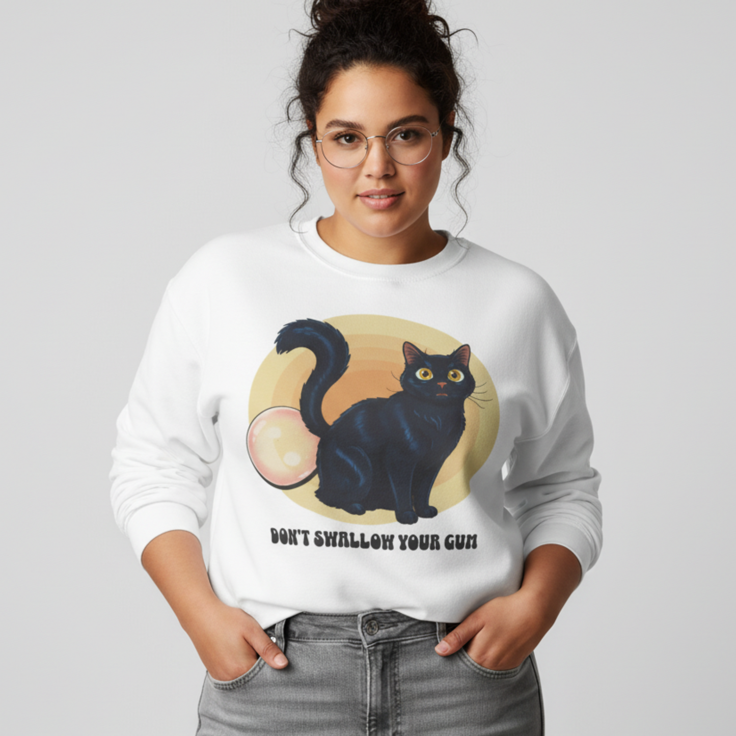 Funny Black Cat Bubblegum Gildan Sweatshirt