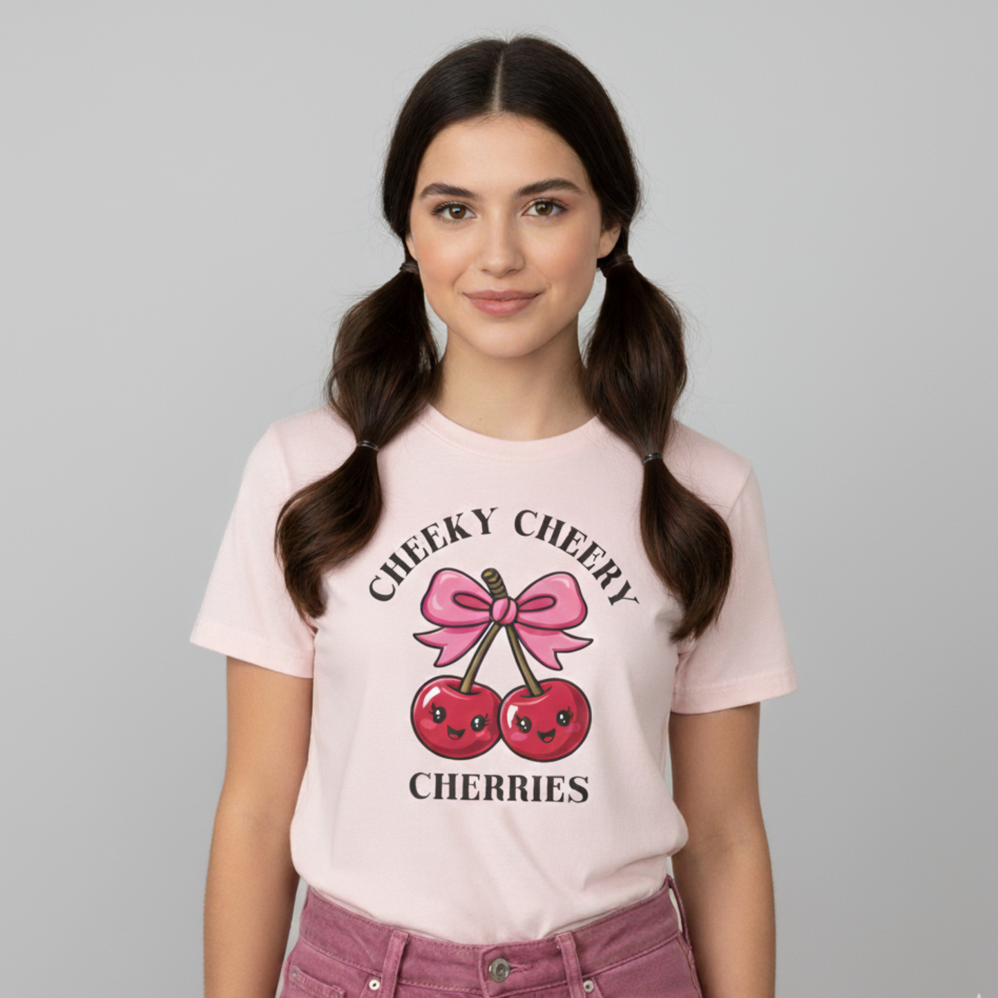 Cherry Cheer Bella + Canvas Tee – Cute Kawaii Cherries with Bow