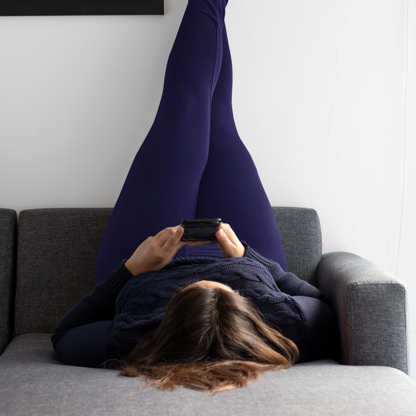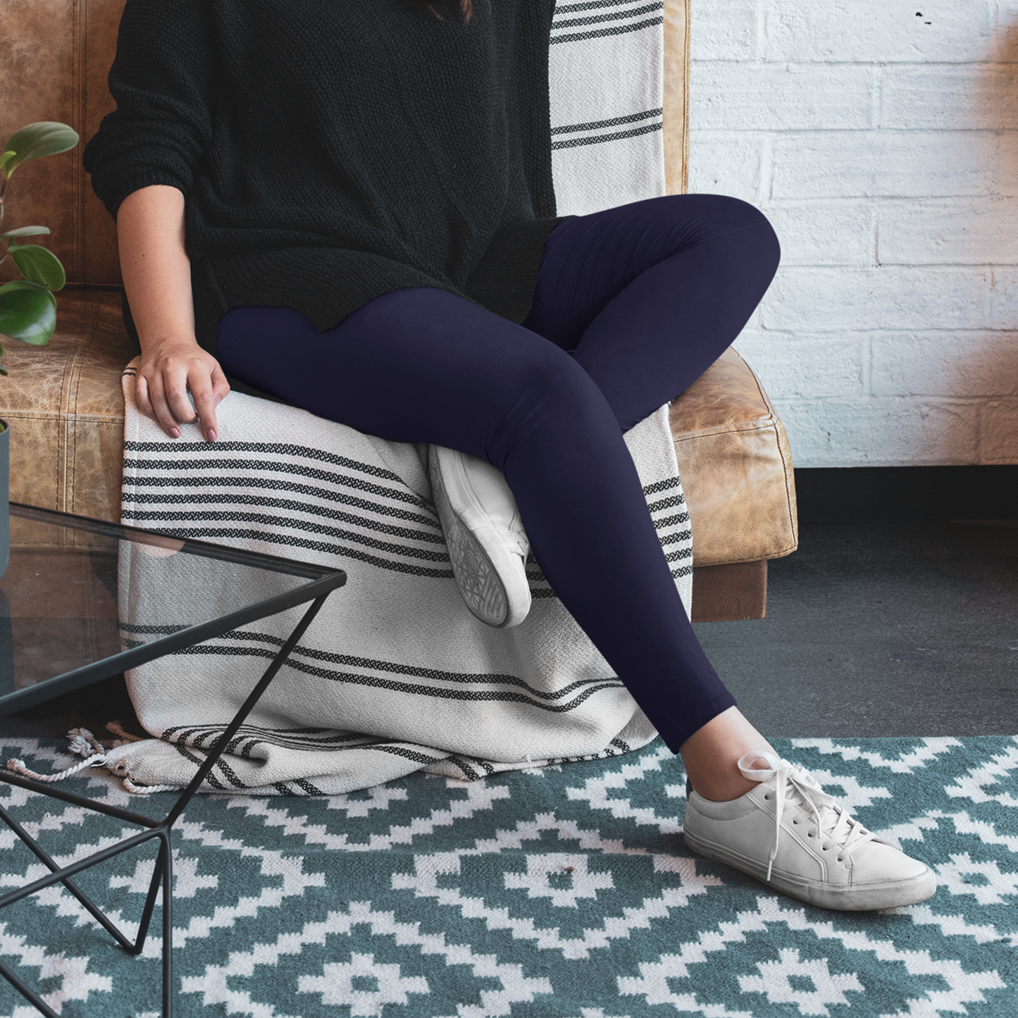 Solid Navy Buttery Soft Lounge Leggings With Pocket on Right Leg