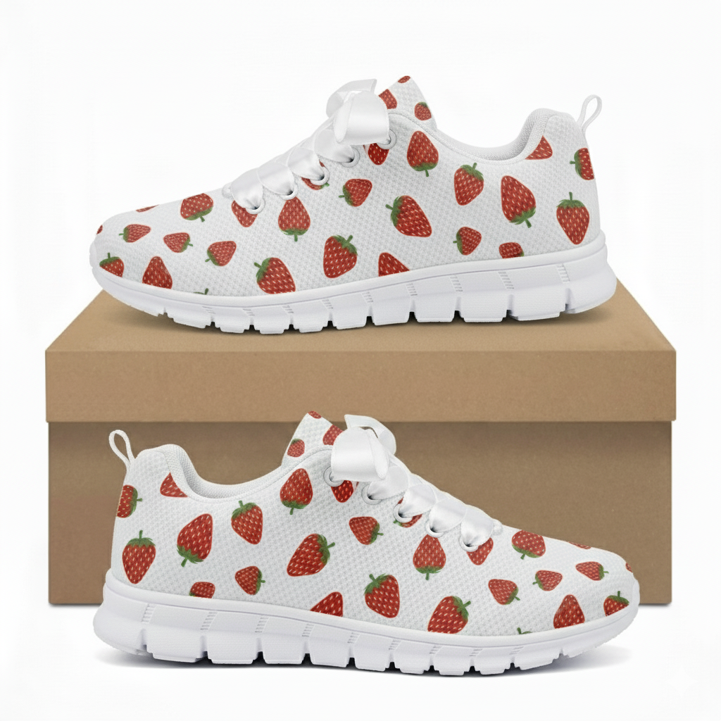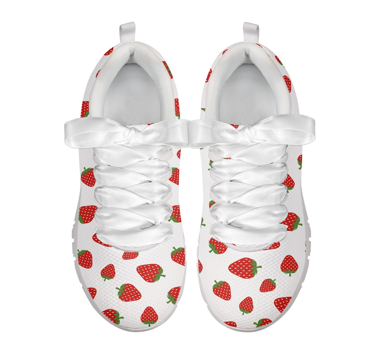 Strawberry Print Classic Walking Shoes With Satin Ribbon Laces