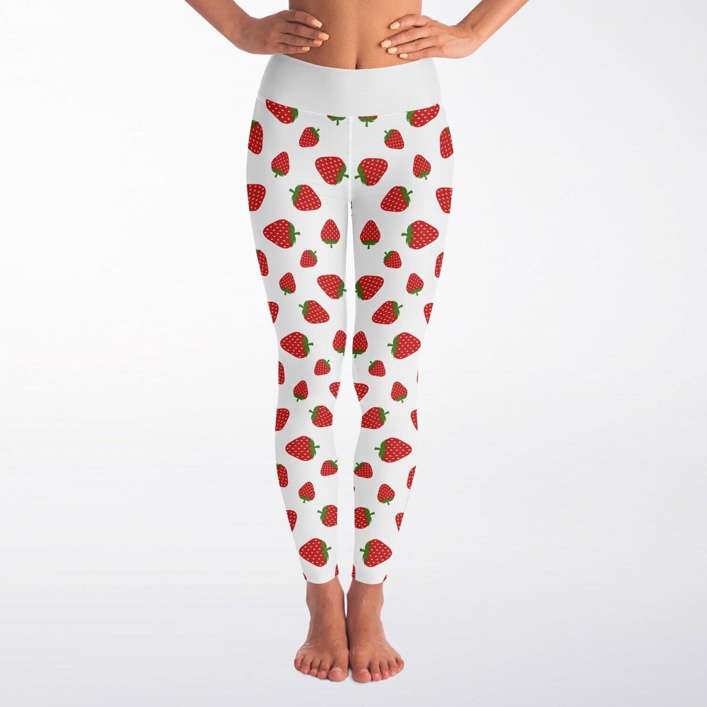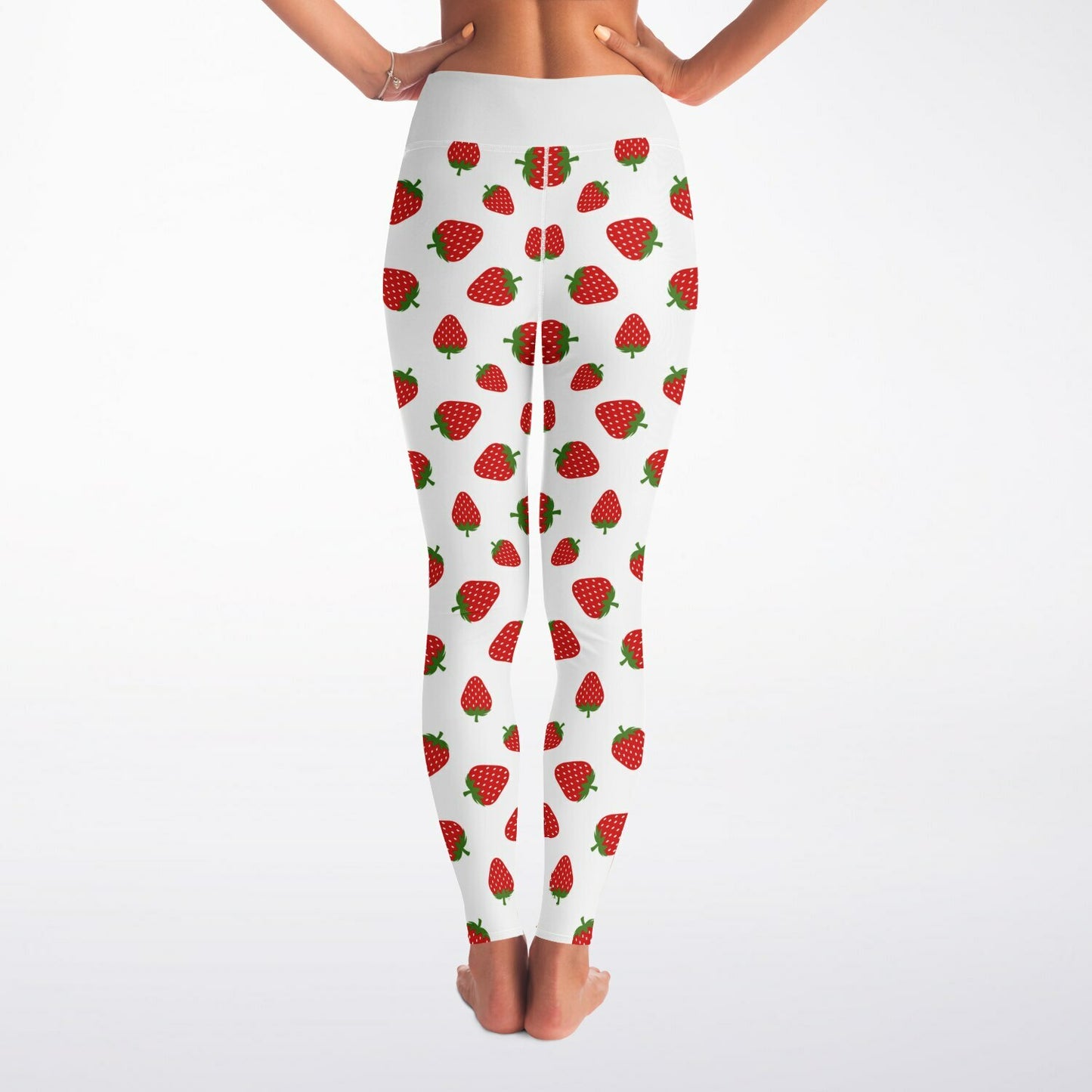 Strawberry Print Squat Proof Leggings – High-Waisted Workout & Gym Leggings