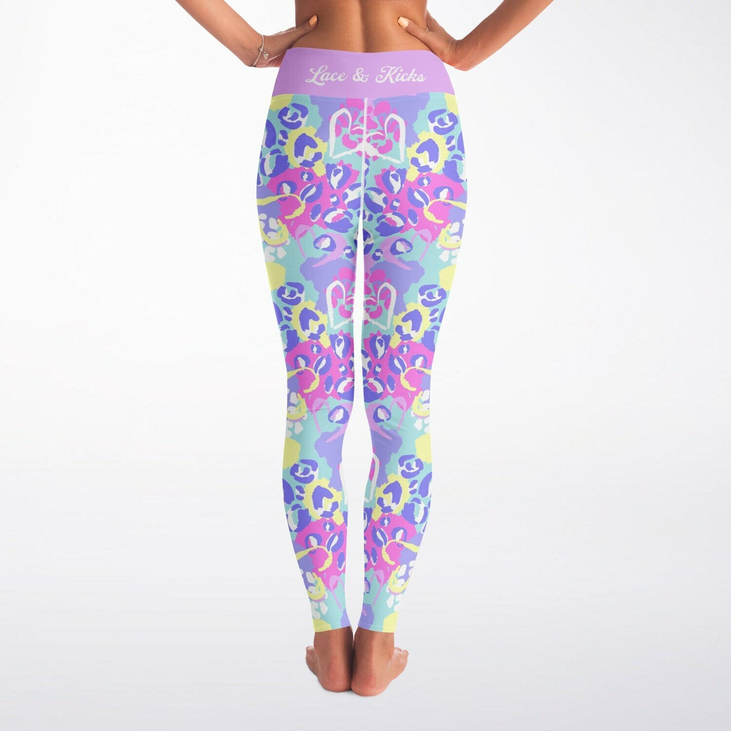 Pastel Leopard Heart Squat Proof Yoga Leggings – High-Waisted Workout & Gym Leggings