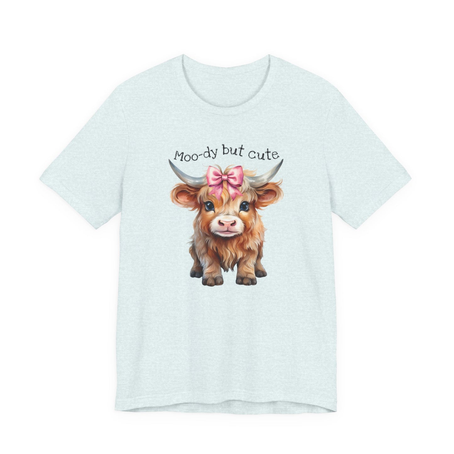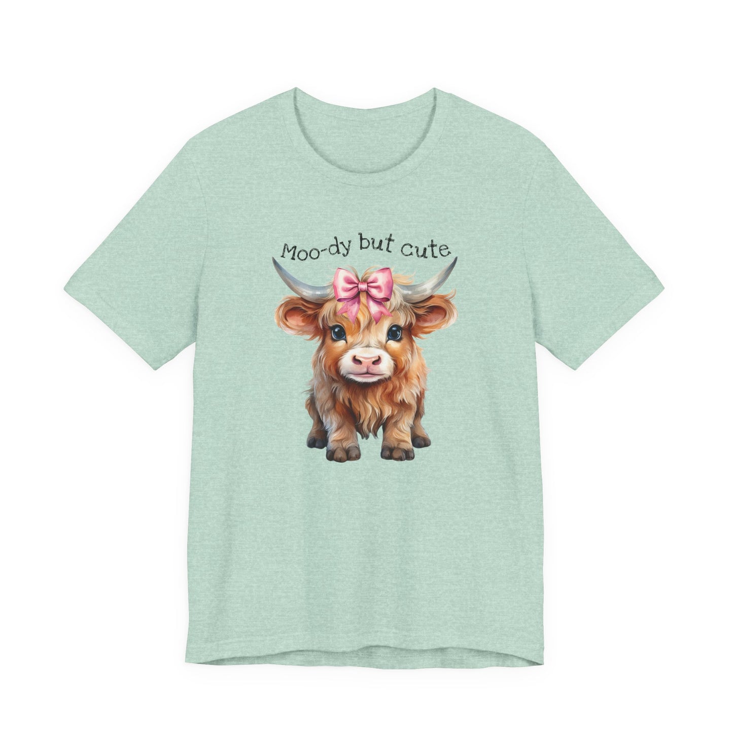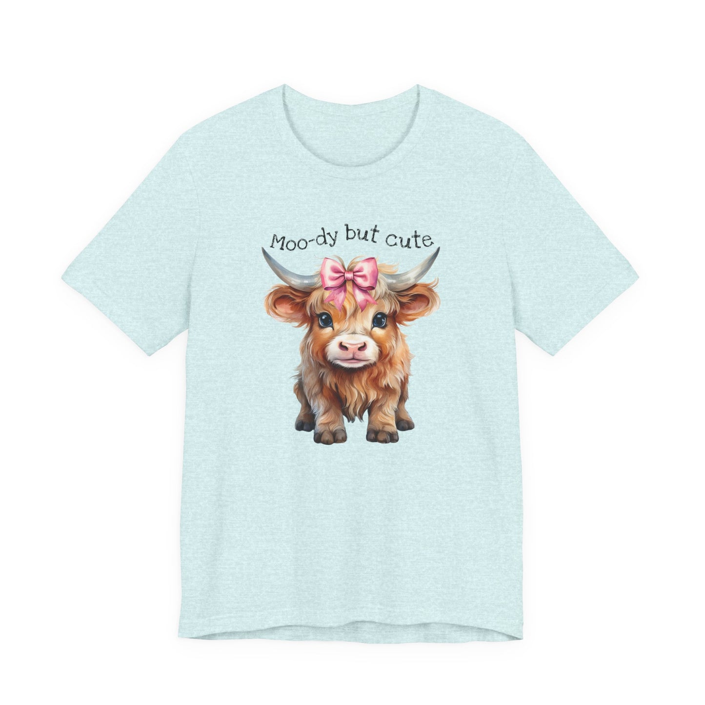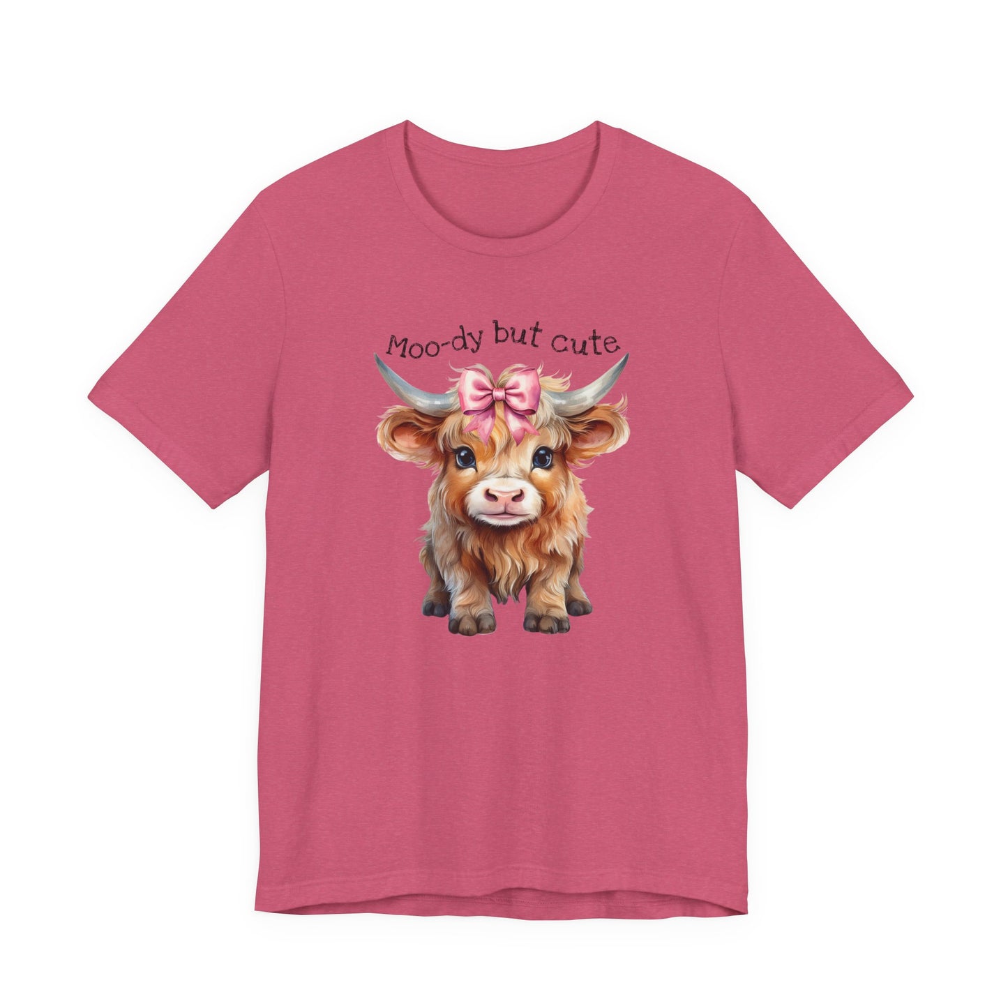Soft, stylish, and totally adorable – this Moo-dy but Cute tee is the perfect blend of rustic charm and girly flair. Featuring a fluffy Highland cow with big blue eyes and a pretty pink bow, this Bella + Canvas 3001 tee is designed for comfort and everyday wear. Whether you’re rocking it at the fair, lounging in town, or just showing off your farm-chic side, this shirt is sure to turn heads and steal hearts.
