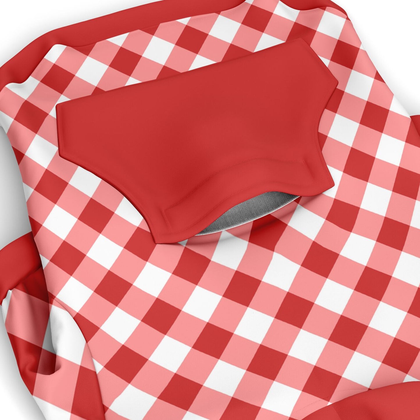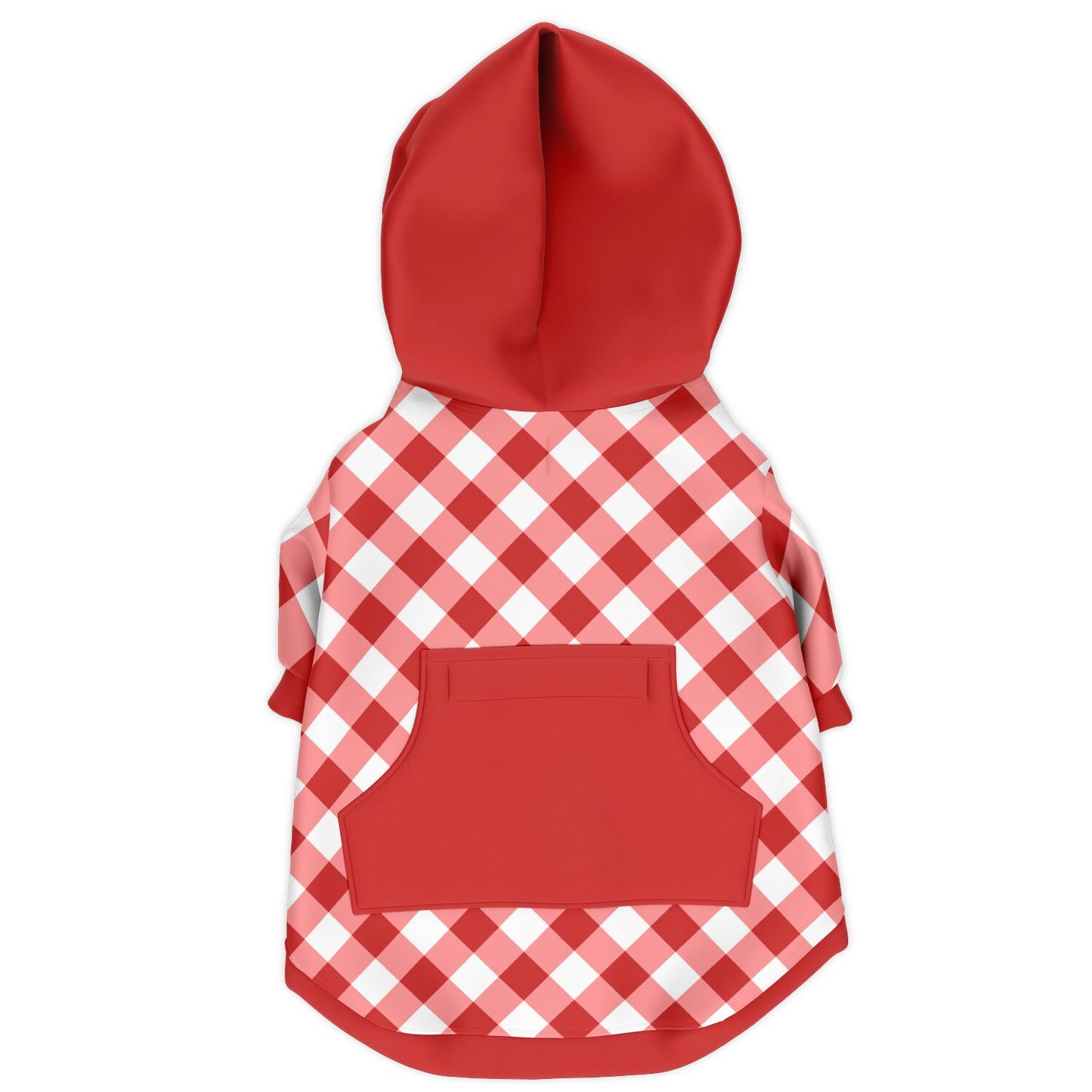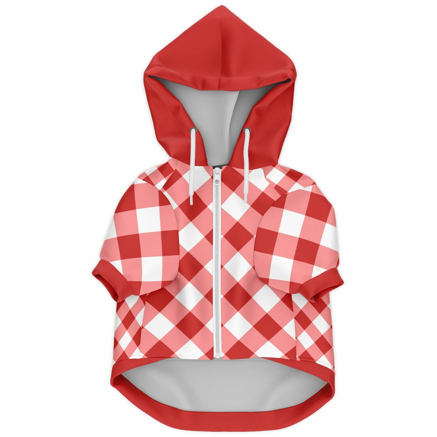 Red And White Gingham Dog Fleece Zip-Up Hoodie