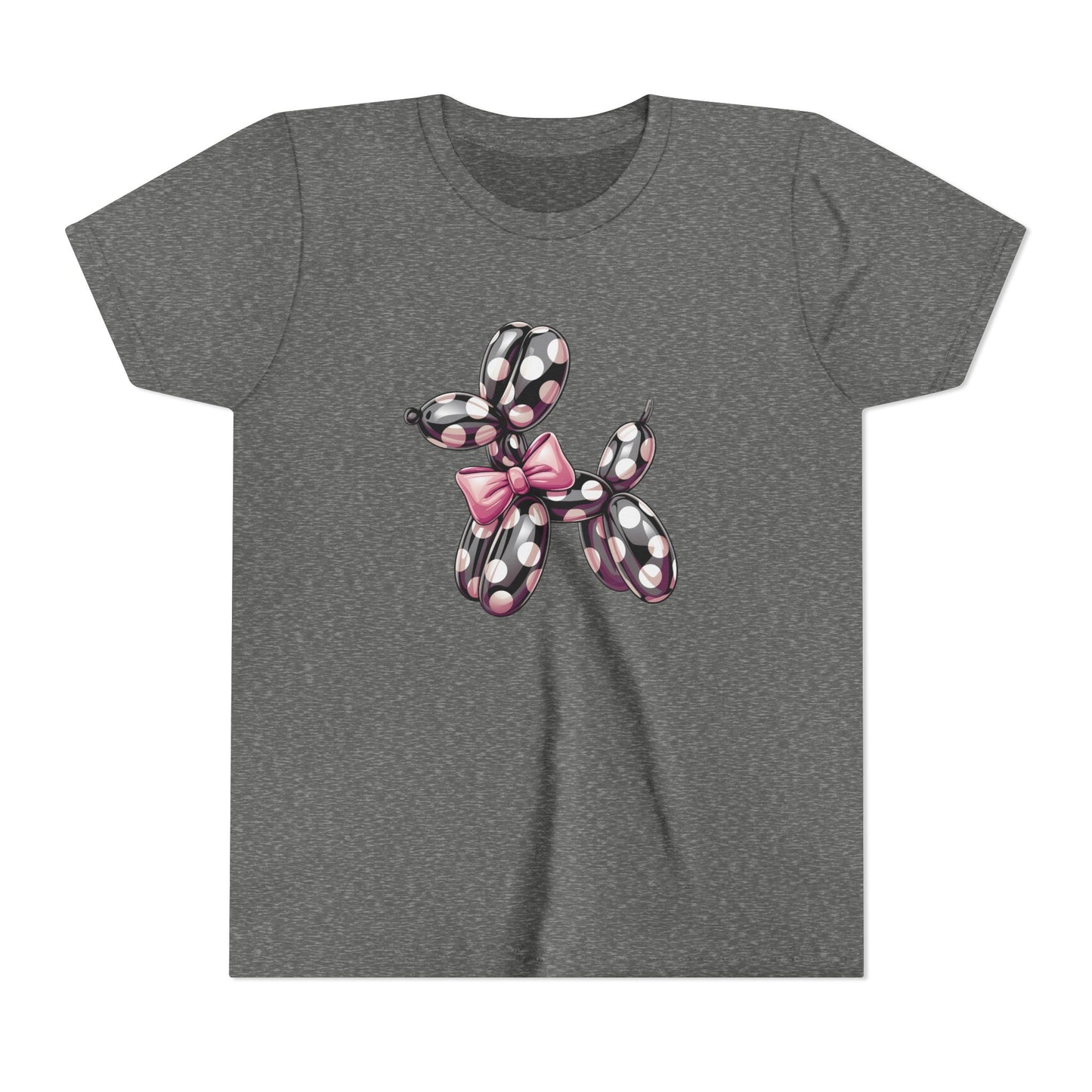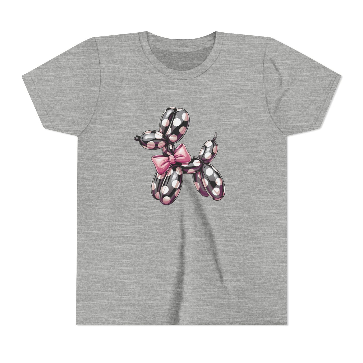 Let your child show off their fun side with this polka dot balloon dog tee! Featuring a glossy black balloon pup covered in white polka dots and topped with a pink bow, it’s cute, bold, and perfect for everyday adventures. Printed on the premium Bella + Canvas youth tee, this shirt is ultra-soft, durable, and ready for school days, parties, and weekend fun.