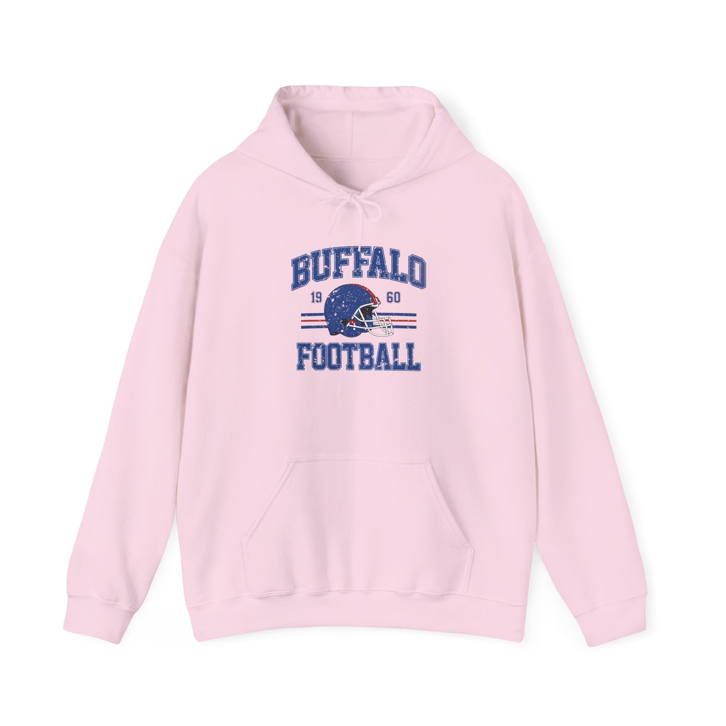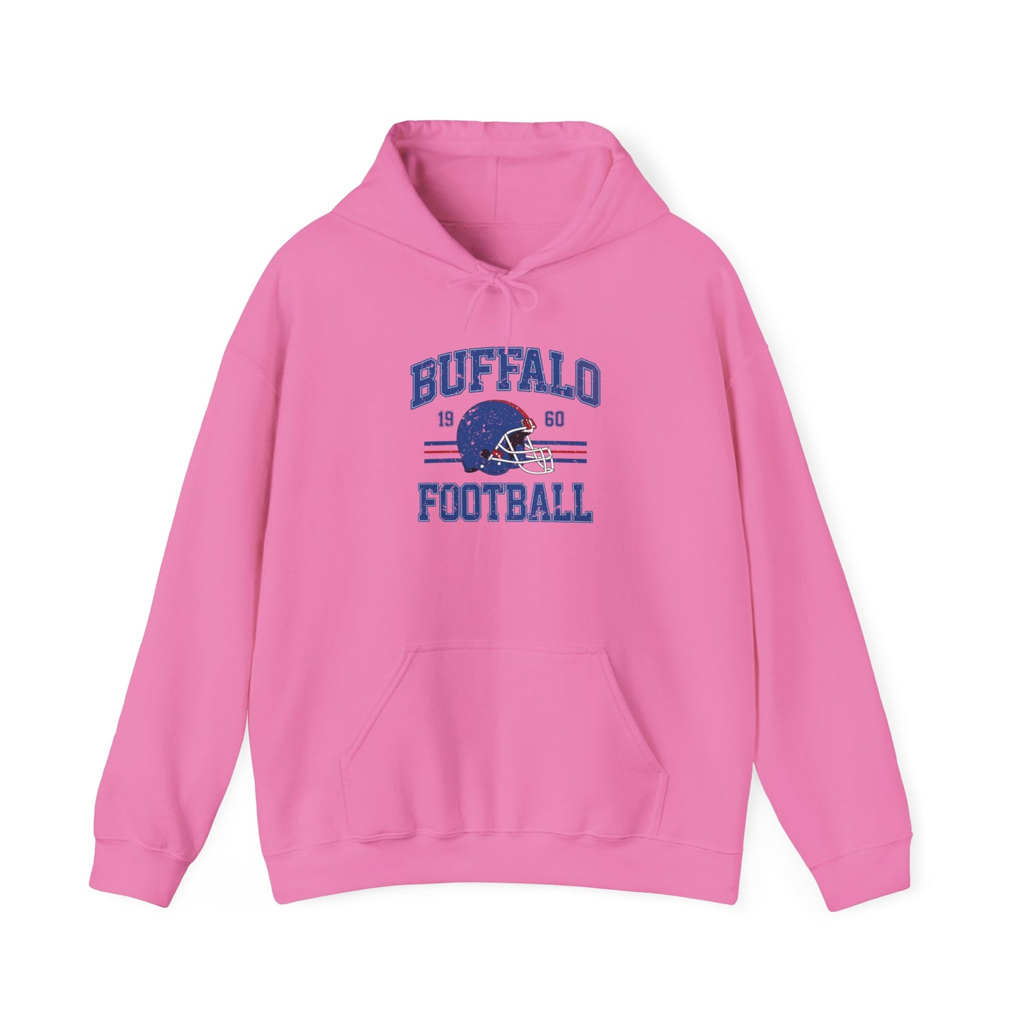 Rep your team in style 🏈💙 This Gildan hoodie features a bold “Buffalo Football” design with a classic helmet graphic and vintage-inspired lettering. The red, white, and blue details give it that timeless game-day energy, perfect for showing your team pride whether you’re at the stadium, tailgating, or watching from home.