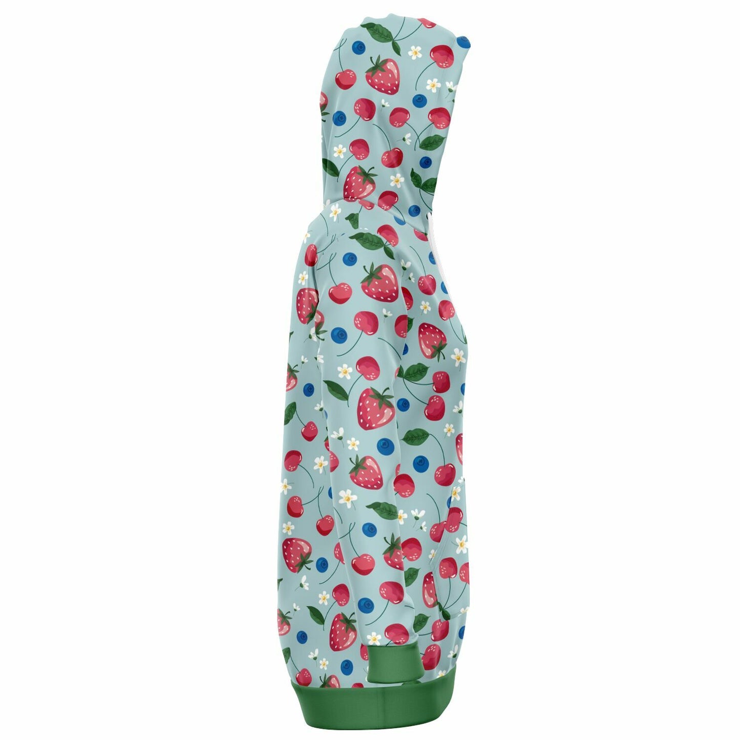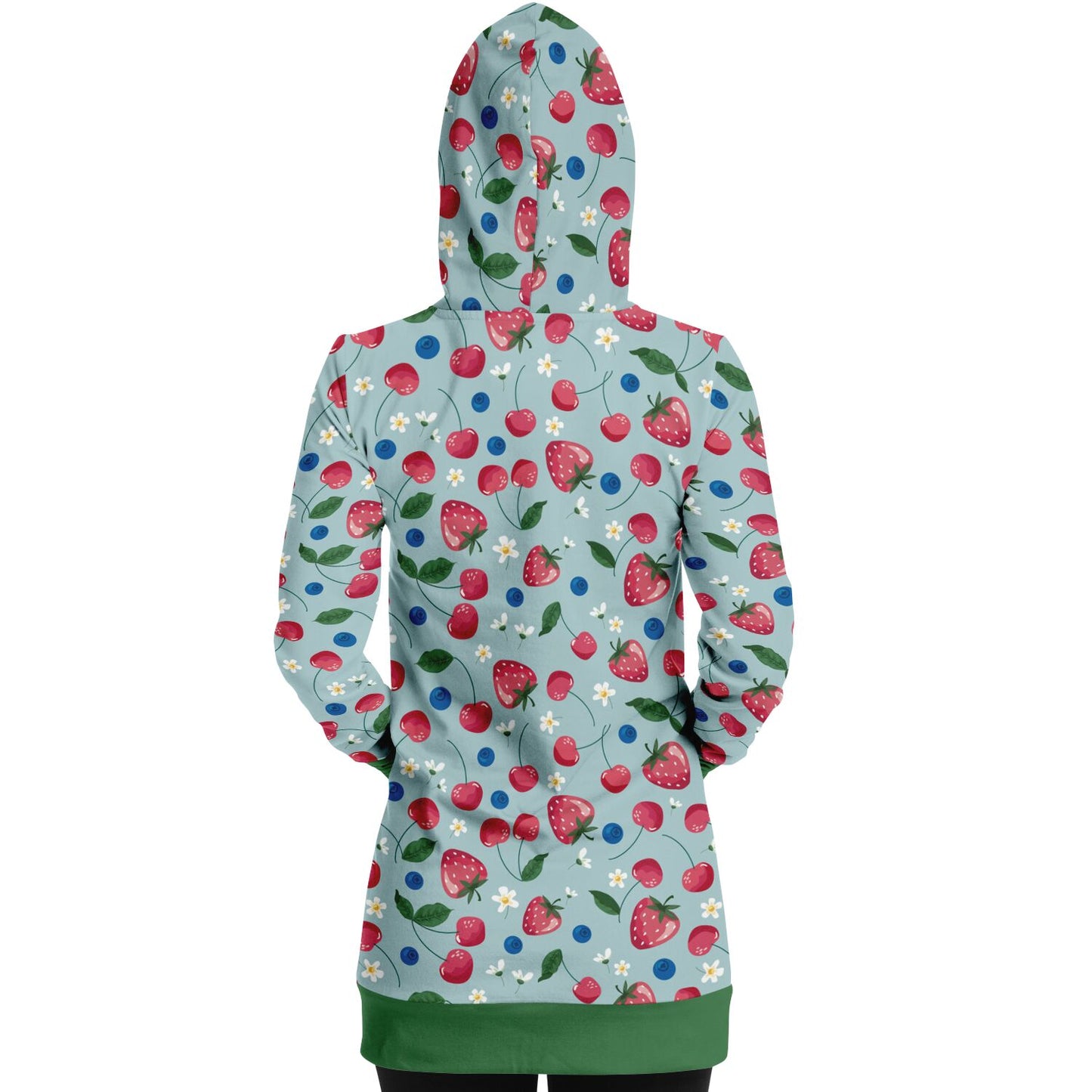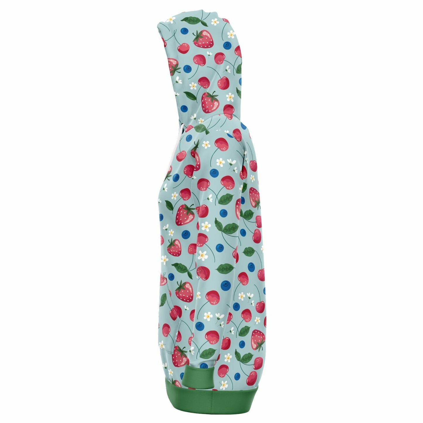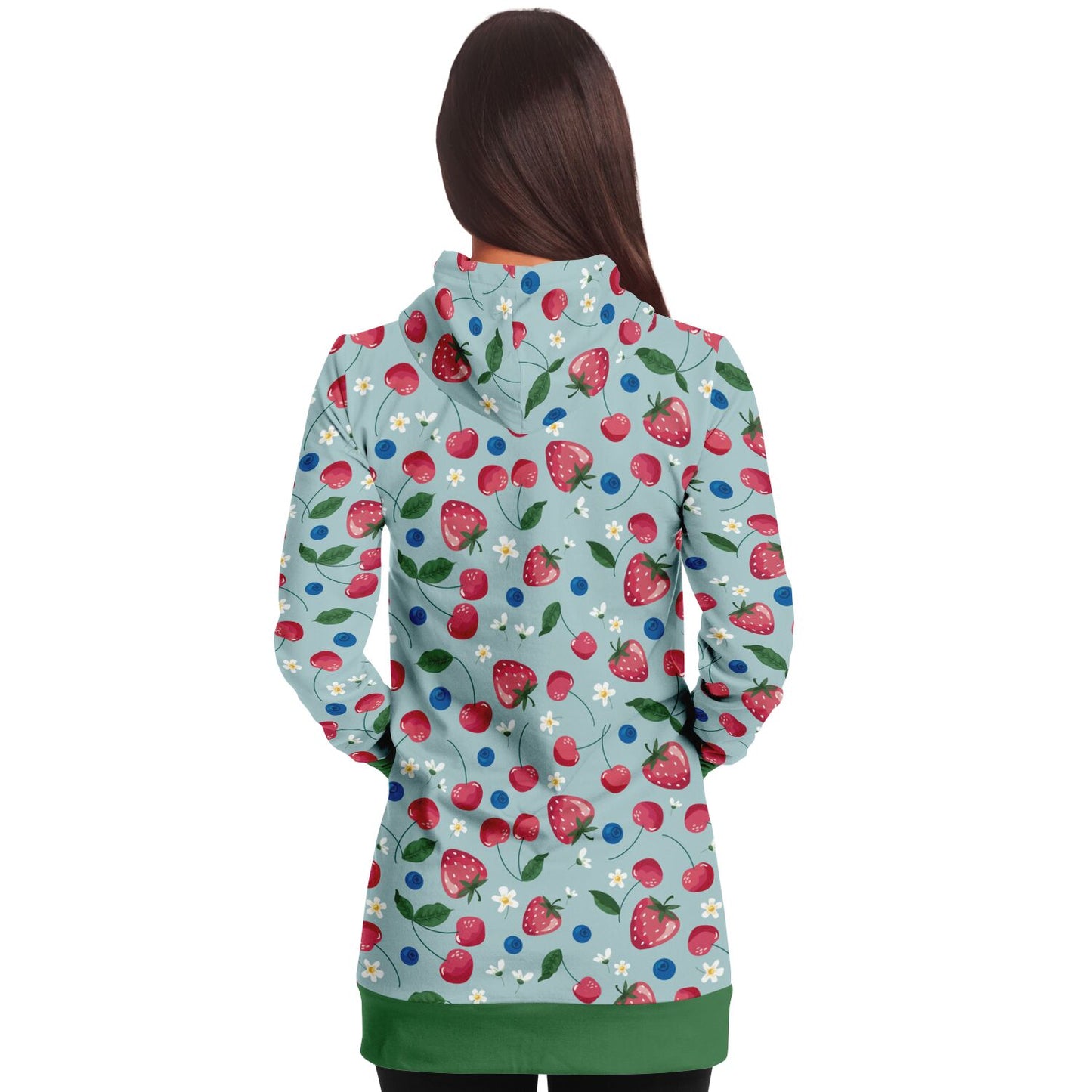 Playful, cozy, and effortlessly stylish 🍒🍓🫐✨ This Berry Blossom Hoodie Dress is the perfect mix of comfort and charm. Featuring a cheerful all-over fruit print with cherries, strawberries, blueberries, and tiny white blossoms, it’s like wearing a little piece of summertime sweetness wherever you go.