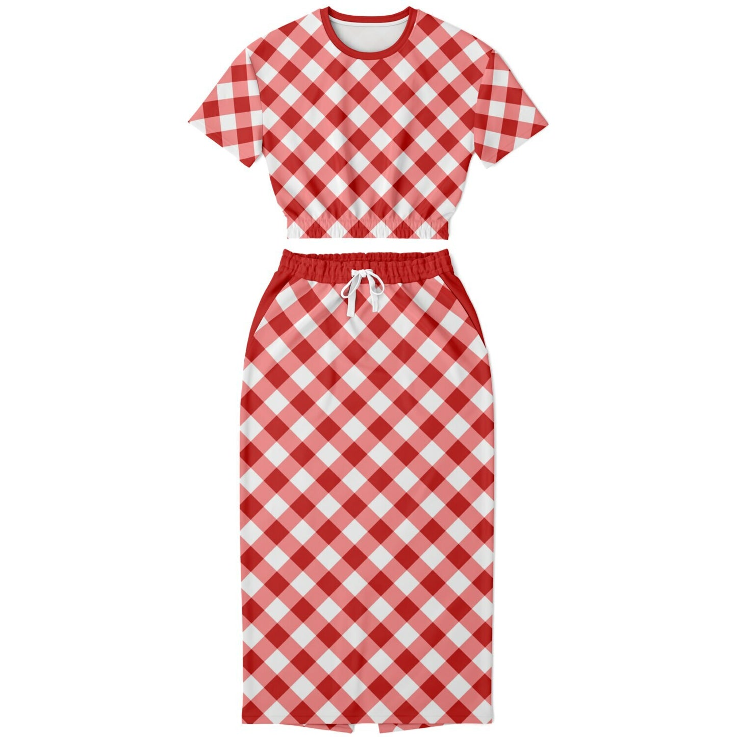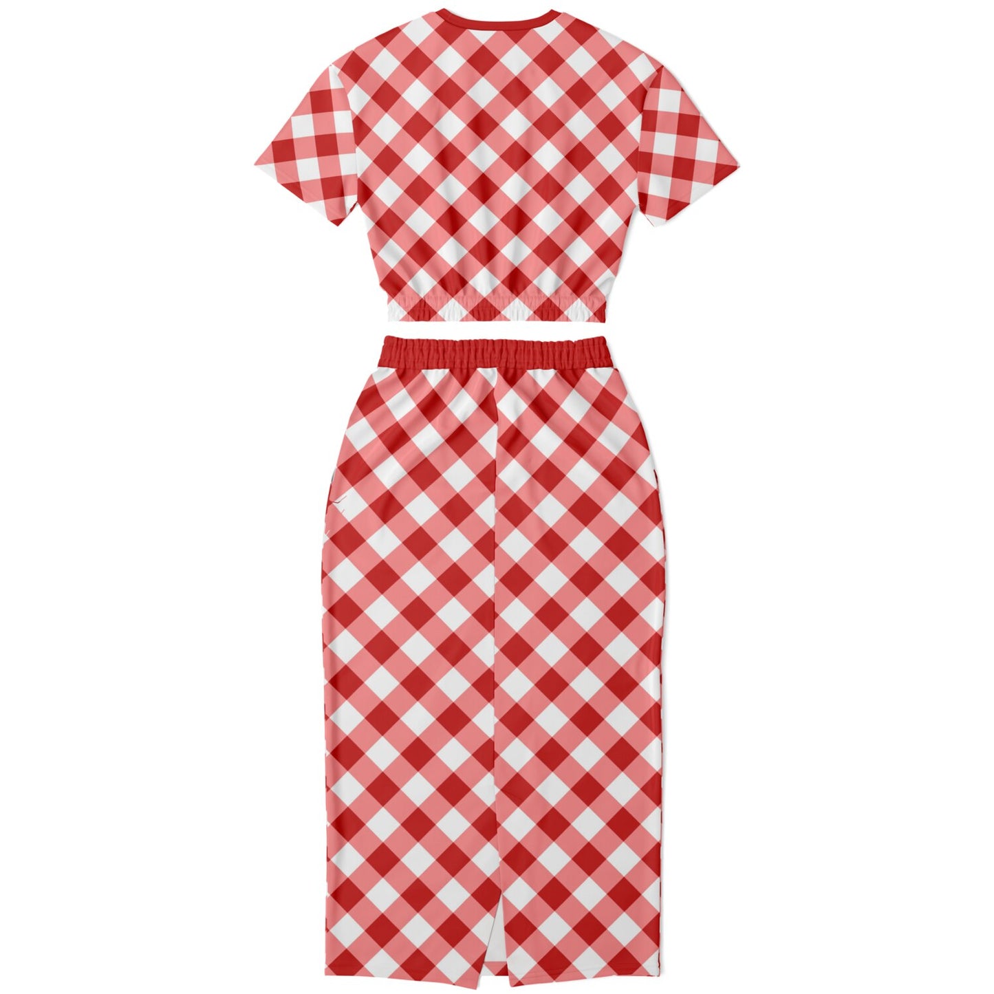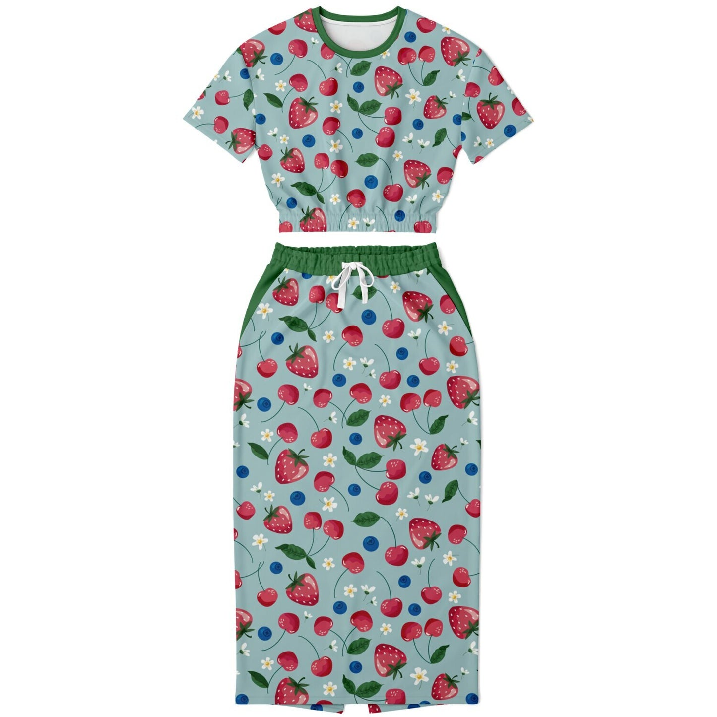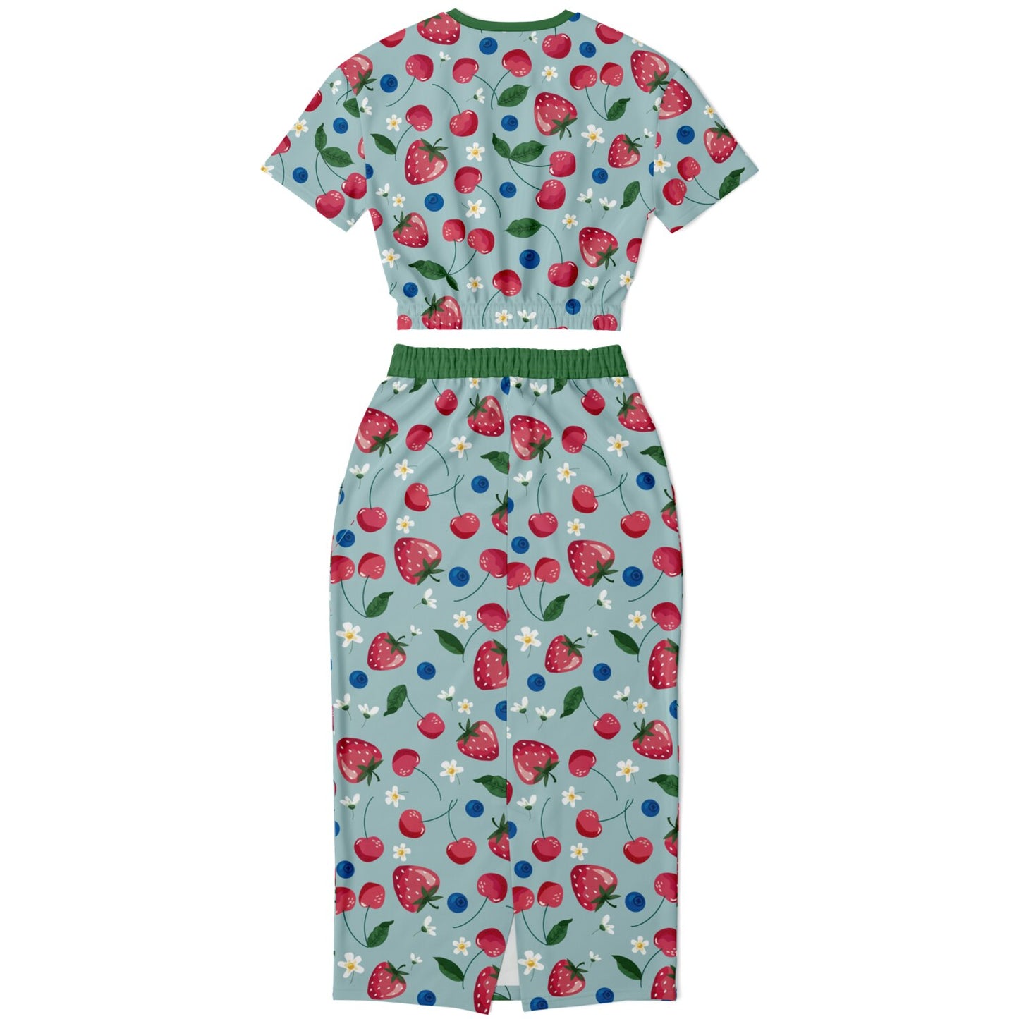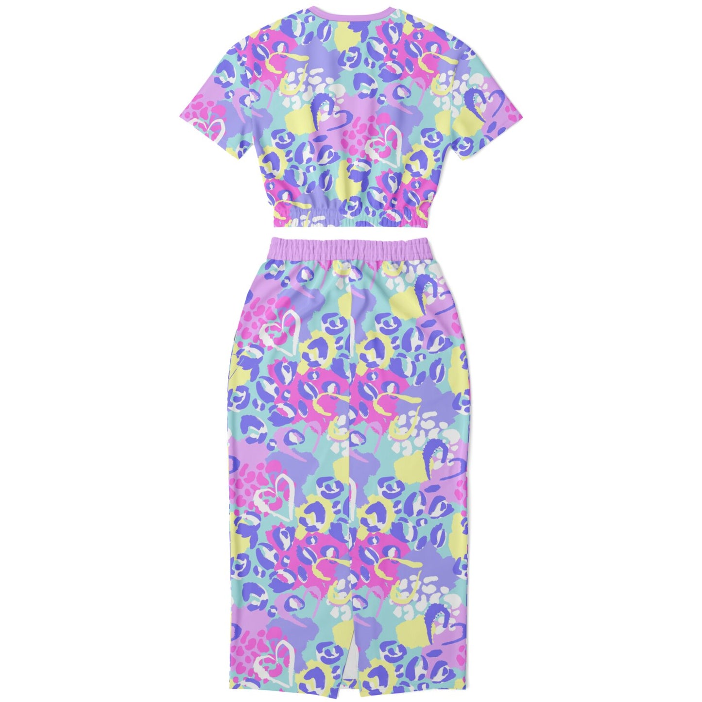 Our athletic cropped pullover and long skirt with pockets set is designed to move with you in every activity. This outfit is not only fun to wear, but is also very practical. The elastic waistbands provide a snug fit while the two side pockets offer extra space for your essentials.