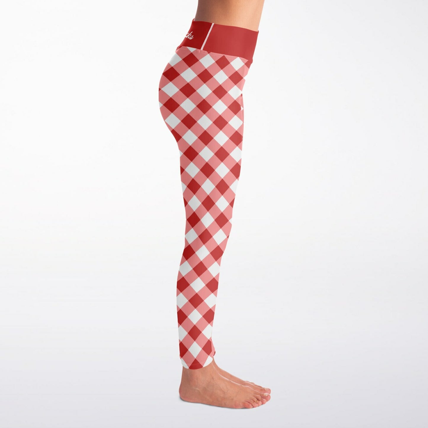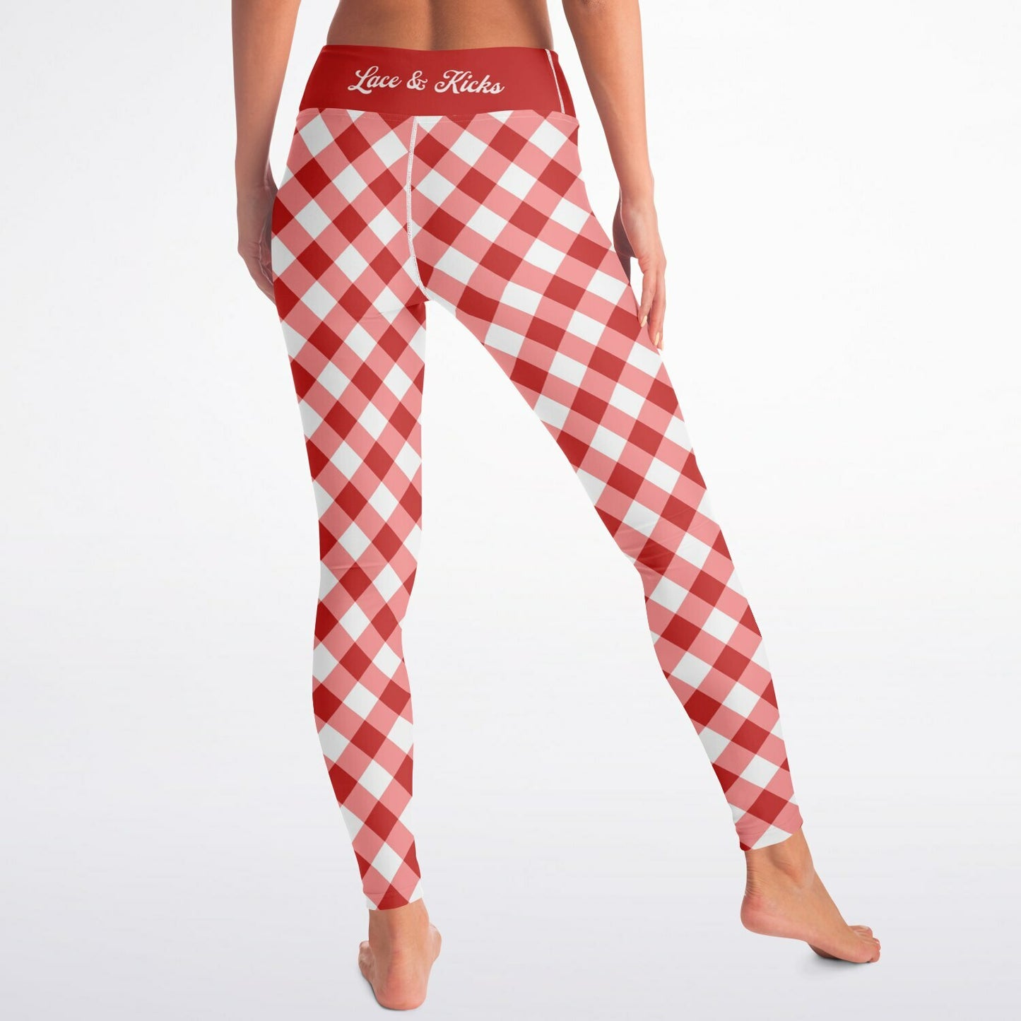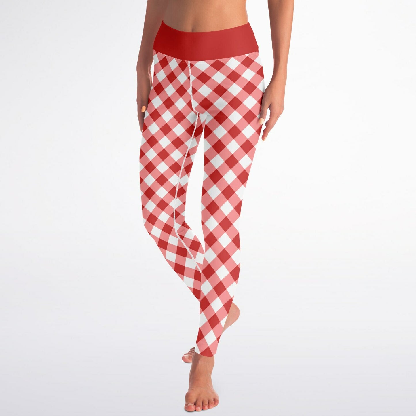 Red And White Gingham Squat Proof Yoga Leggings - High-Waisted Workout & Gym Leggings