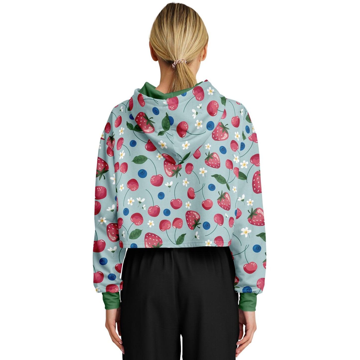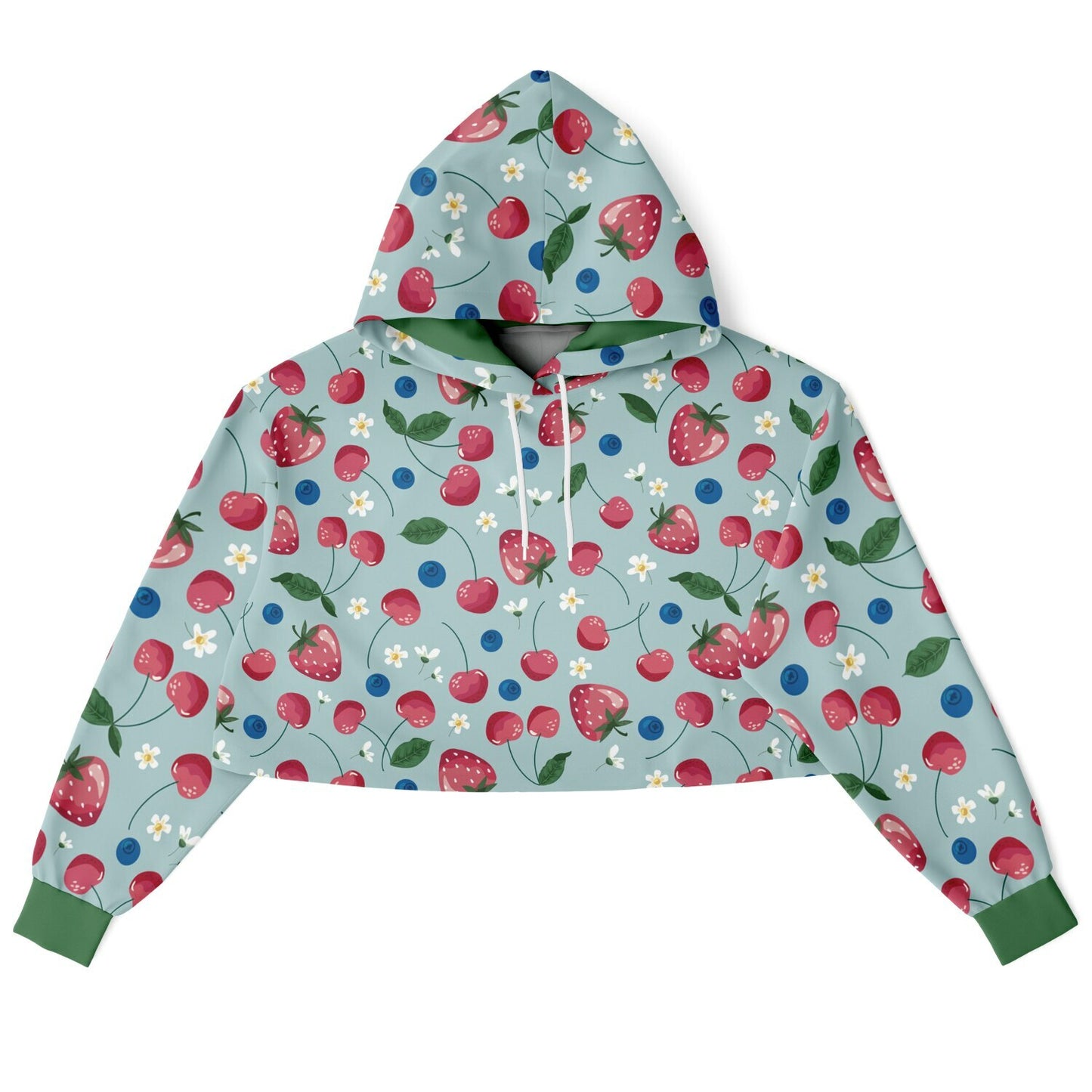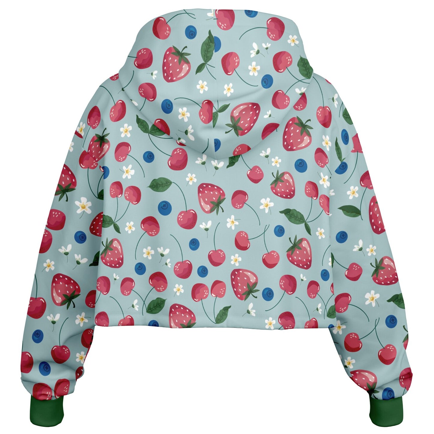 Sweet, fresh, and oh-so-playful 🍒🍓🫐✨ This cropped hoodie is the ultimate mix of cozy and cute! Covered in a whimsical all-over fruit pattern of cherries, strawberries, blueberries, and tiny white blossoms, it’s a cheerful piece that feels like a sunny day in your closet.