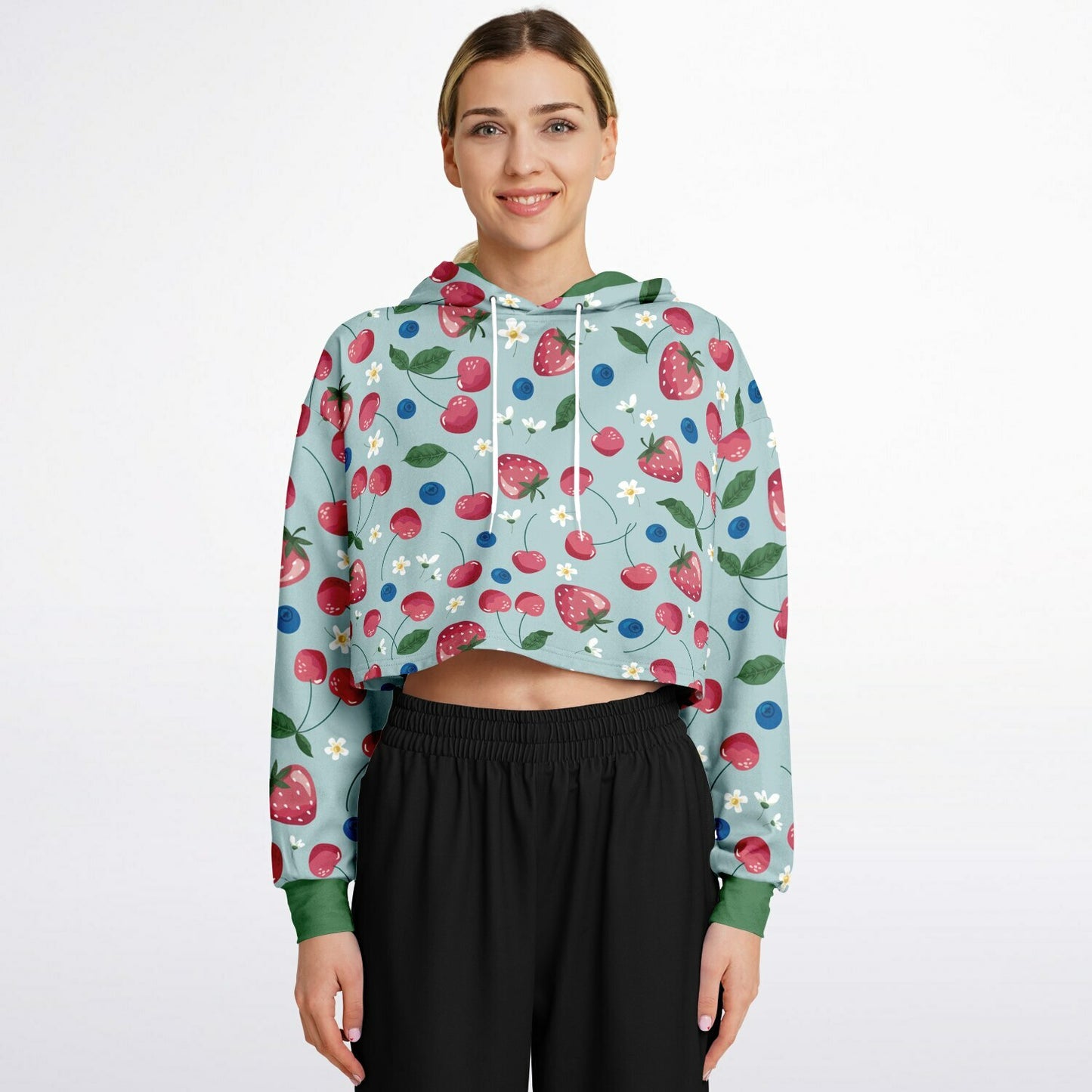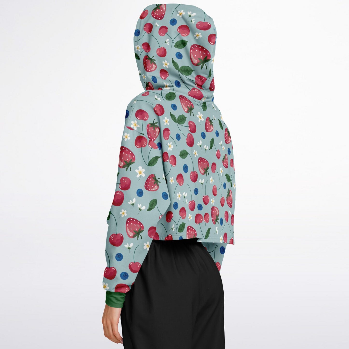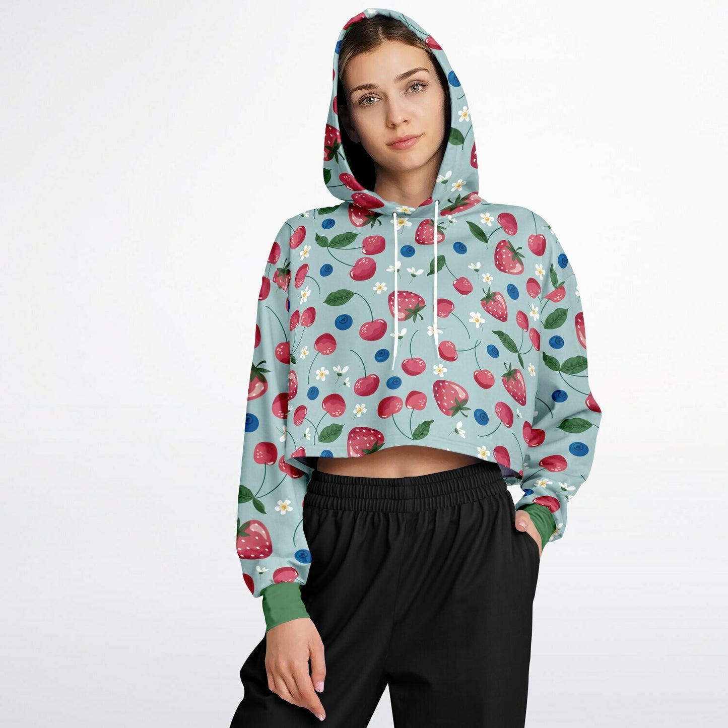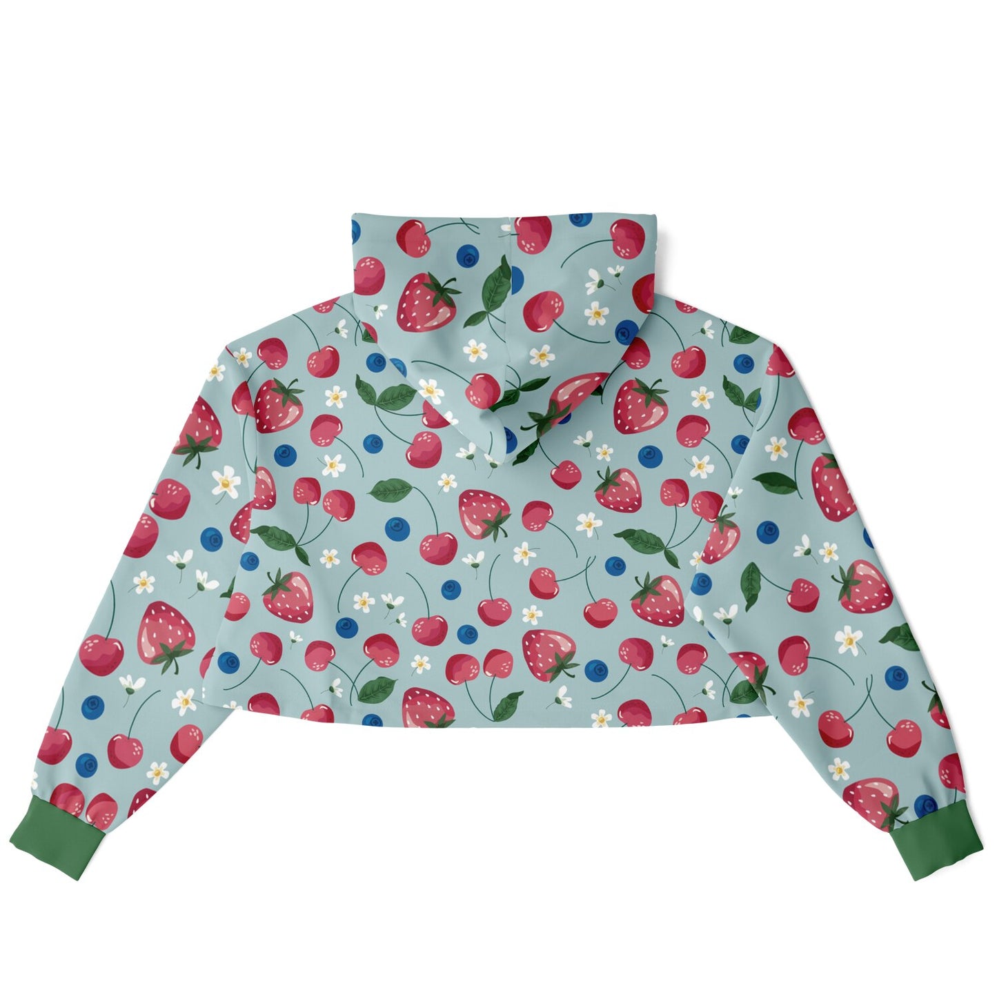 Sweet, fresh, and oh-so-playful 🍒🍓🫐✨ This cropped hoodie is the ultimate mix of cozy and cute! Covered in a whimsical all-over fruit pattern of cherries, strawberries, blueberries, and tiny white blossoms, it’s a cheerful piece that feels like a sunny day in your closet.