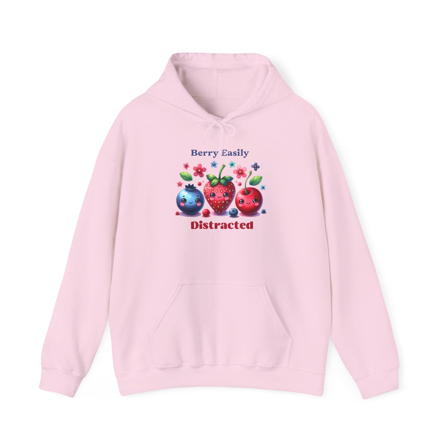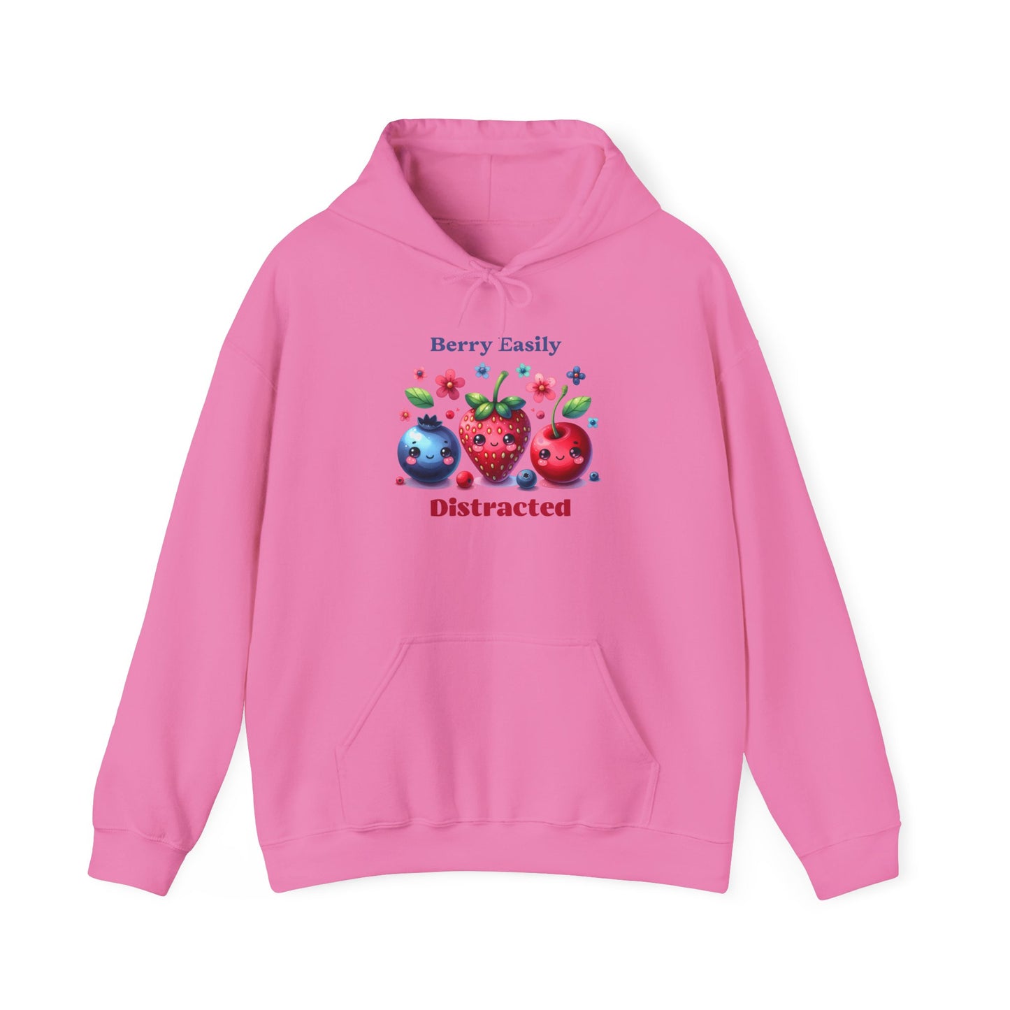 Wrap yourself in comfort with this Berry Easily Distracted hoodie — featuring the most adorable trio of fruit friends (blueberry, strawberry, and cherry) surrounded by flowers and happy vibes. It’s a playful nod to distraction, daydreaming, and living life in full color — all while staying warm and stylish.