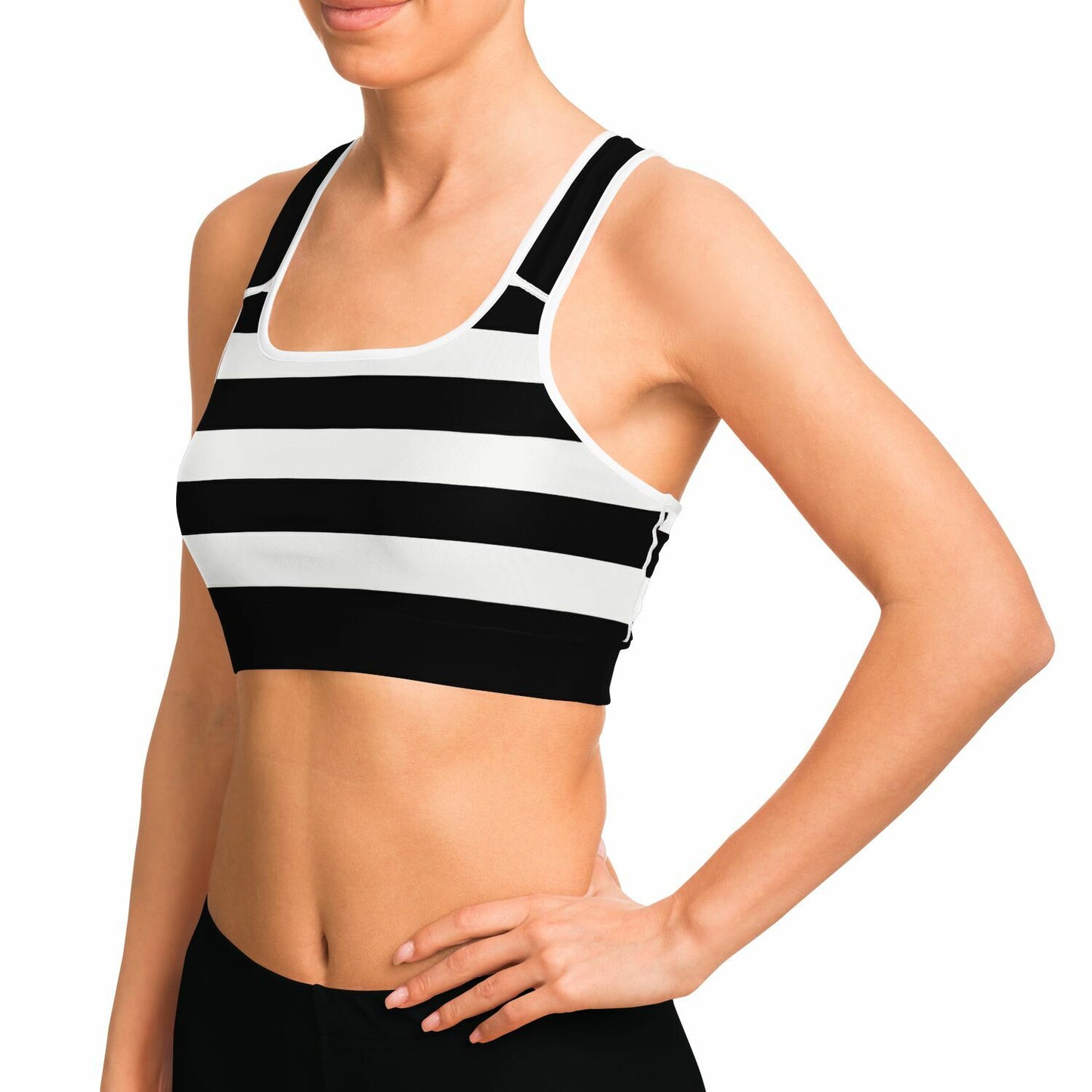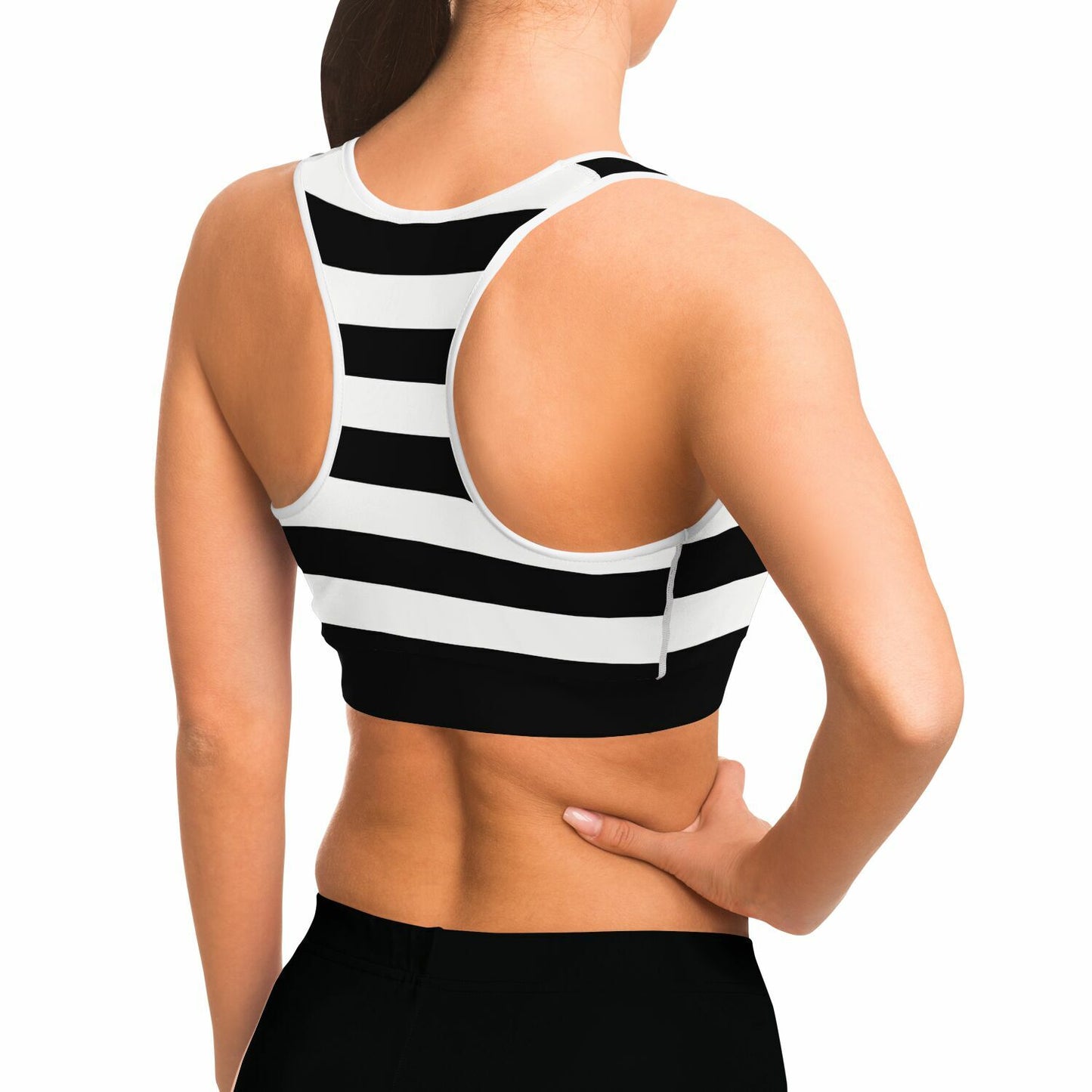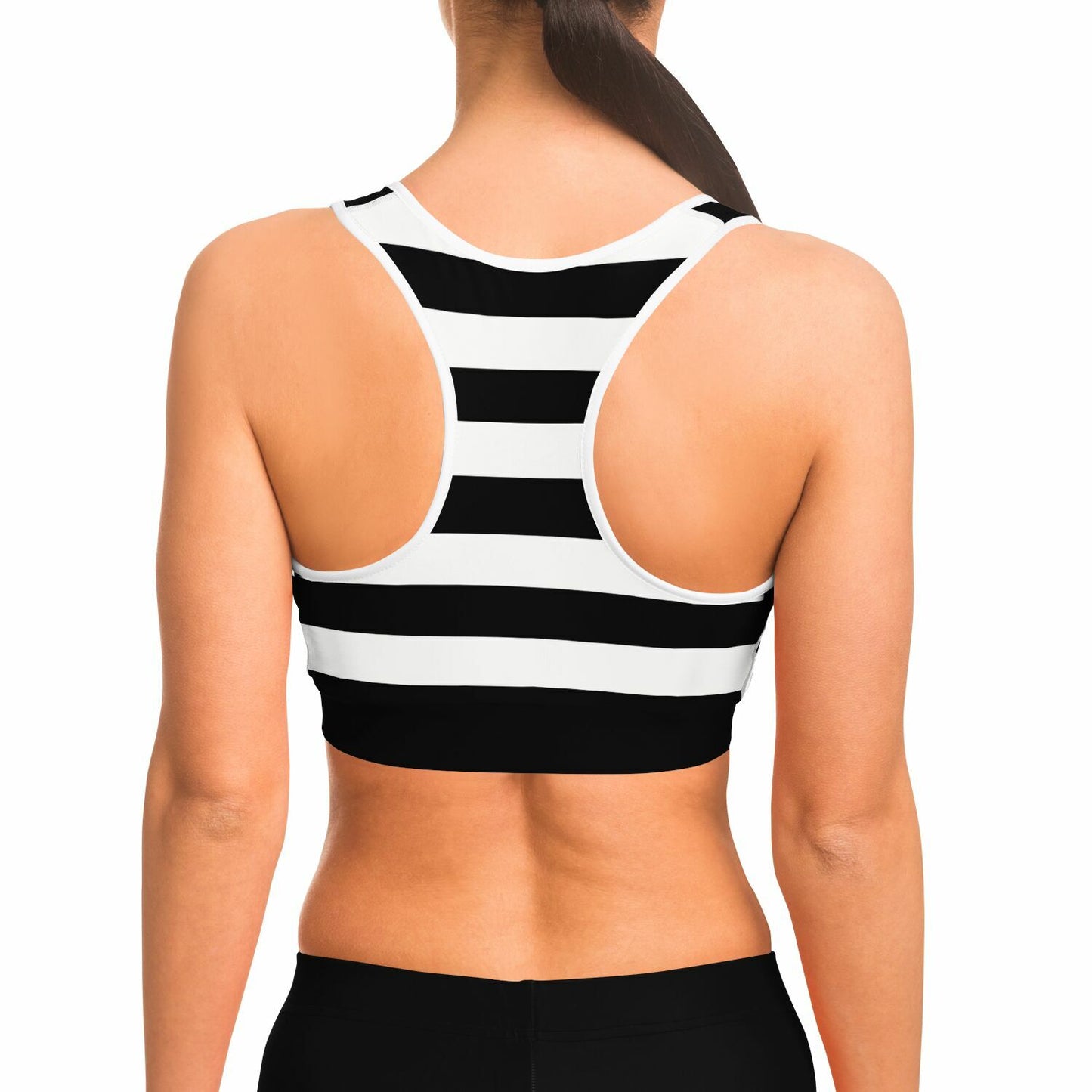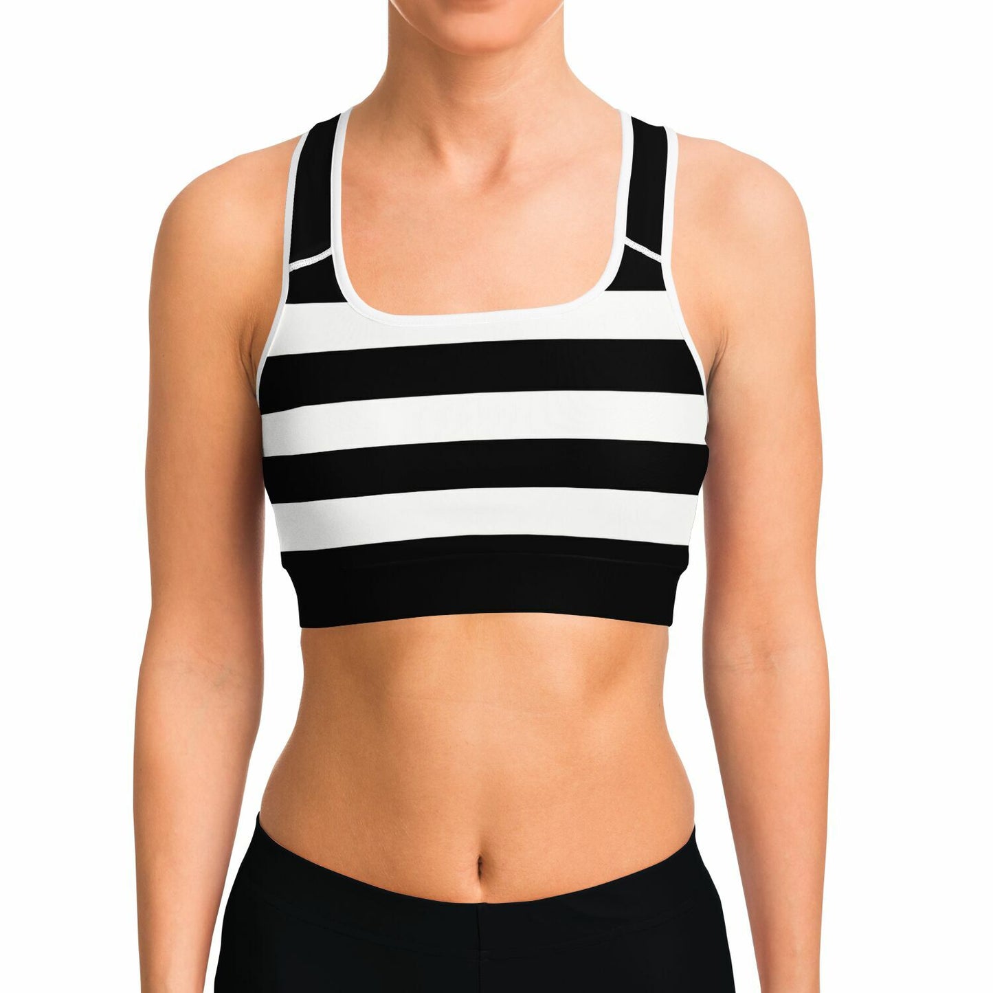 Black And White Stripeds Racerback Sports Bra