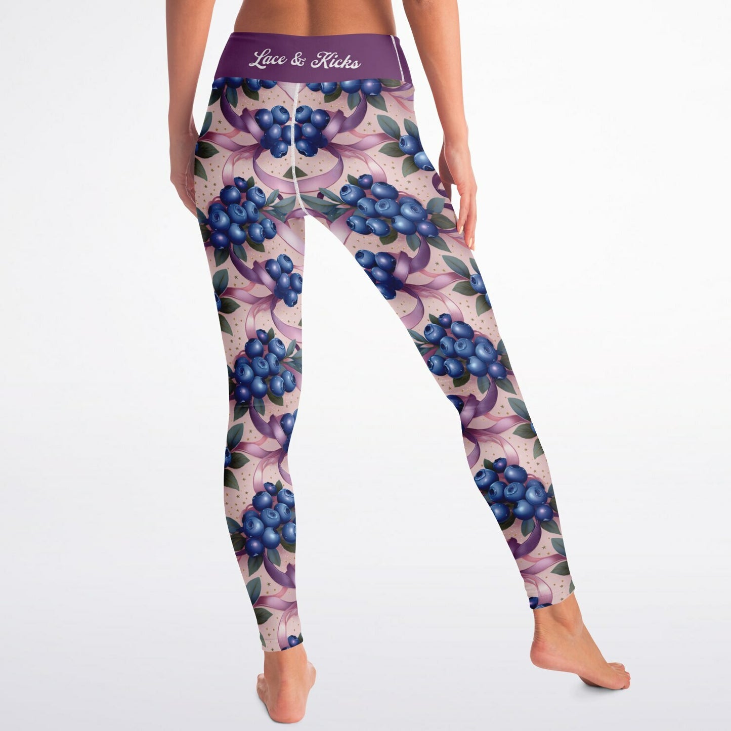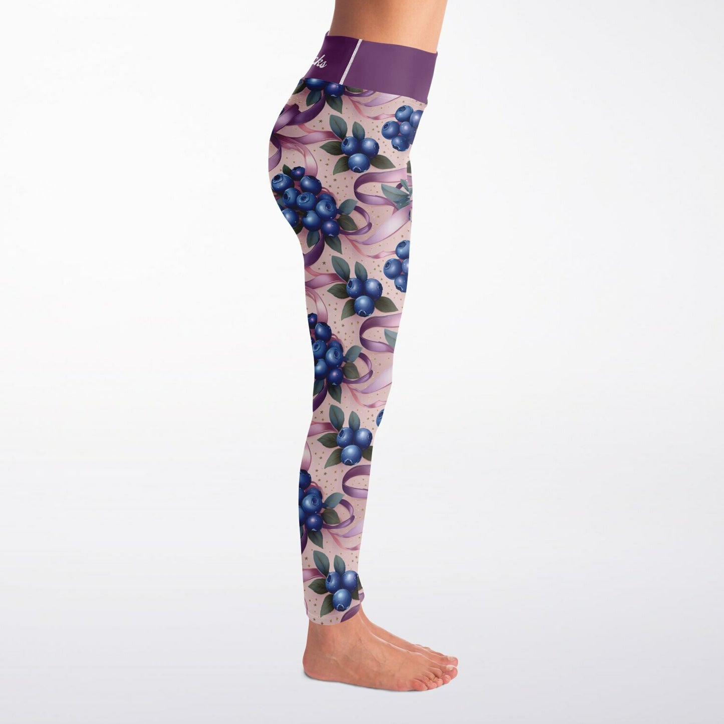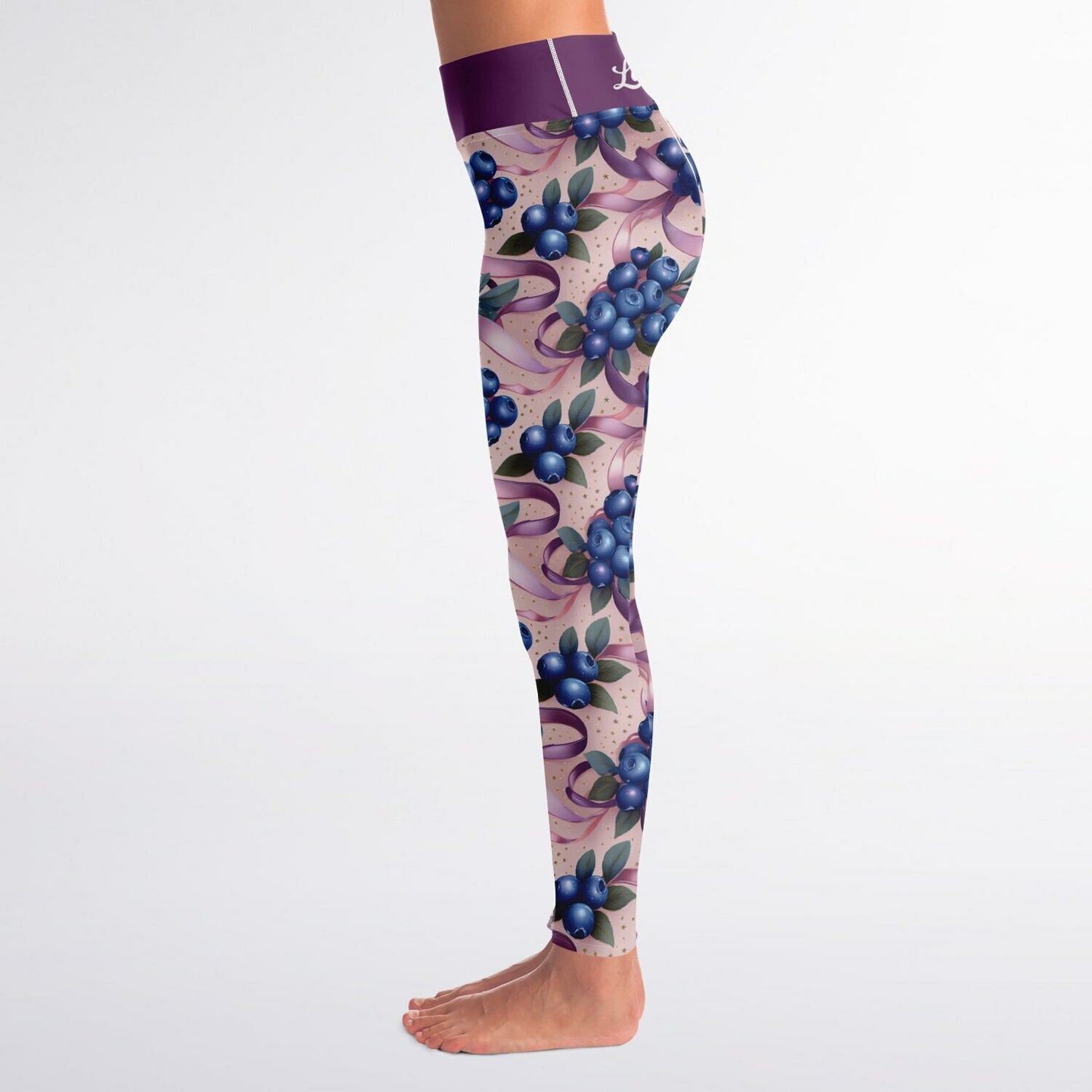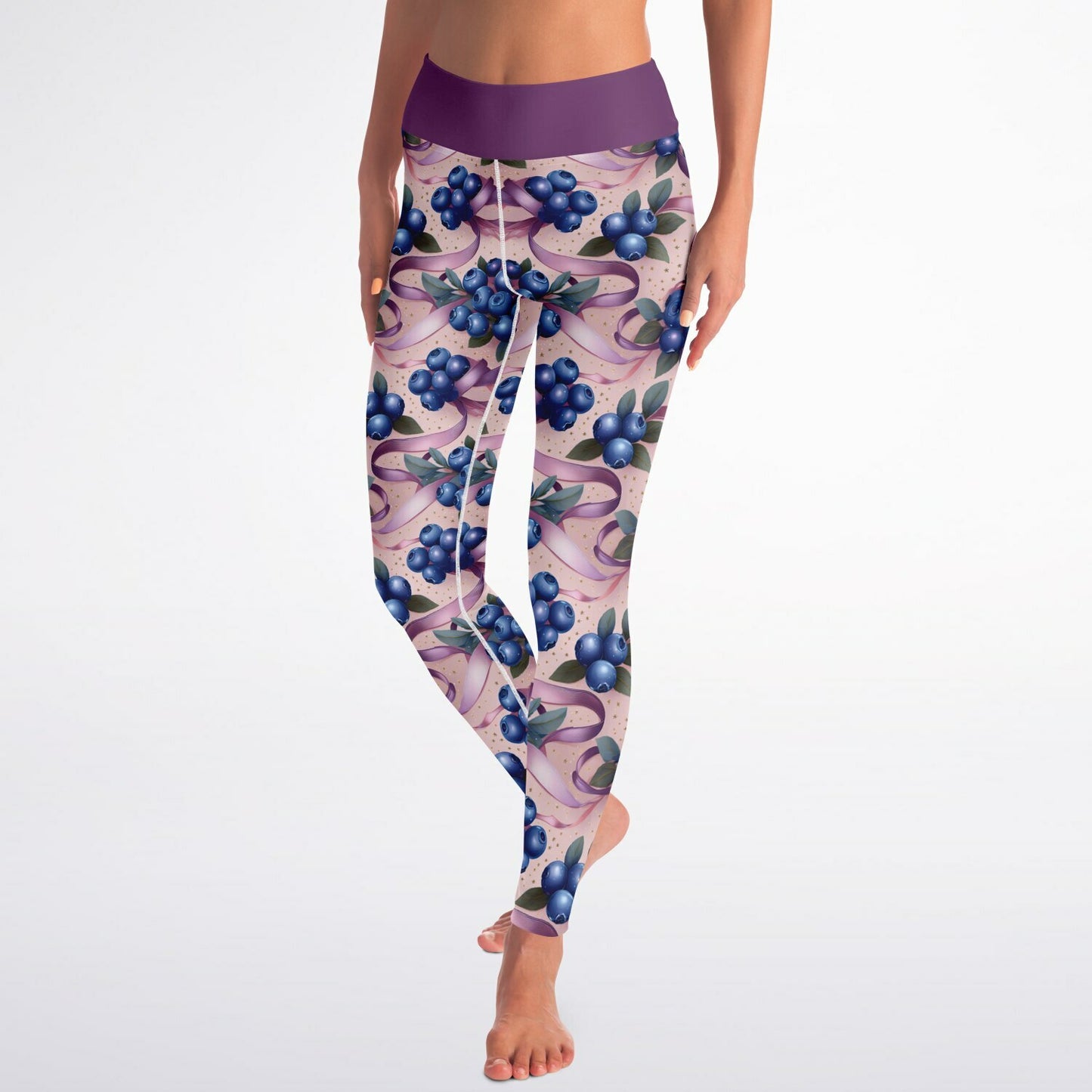 Blueberry Ribbons Squat Proof Yoga Leggings - High-Waisted Workout & Gym Leggings