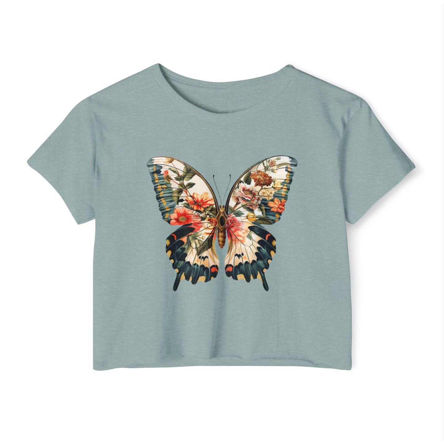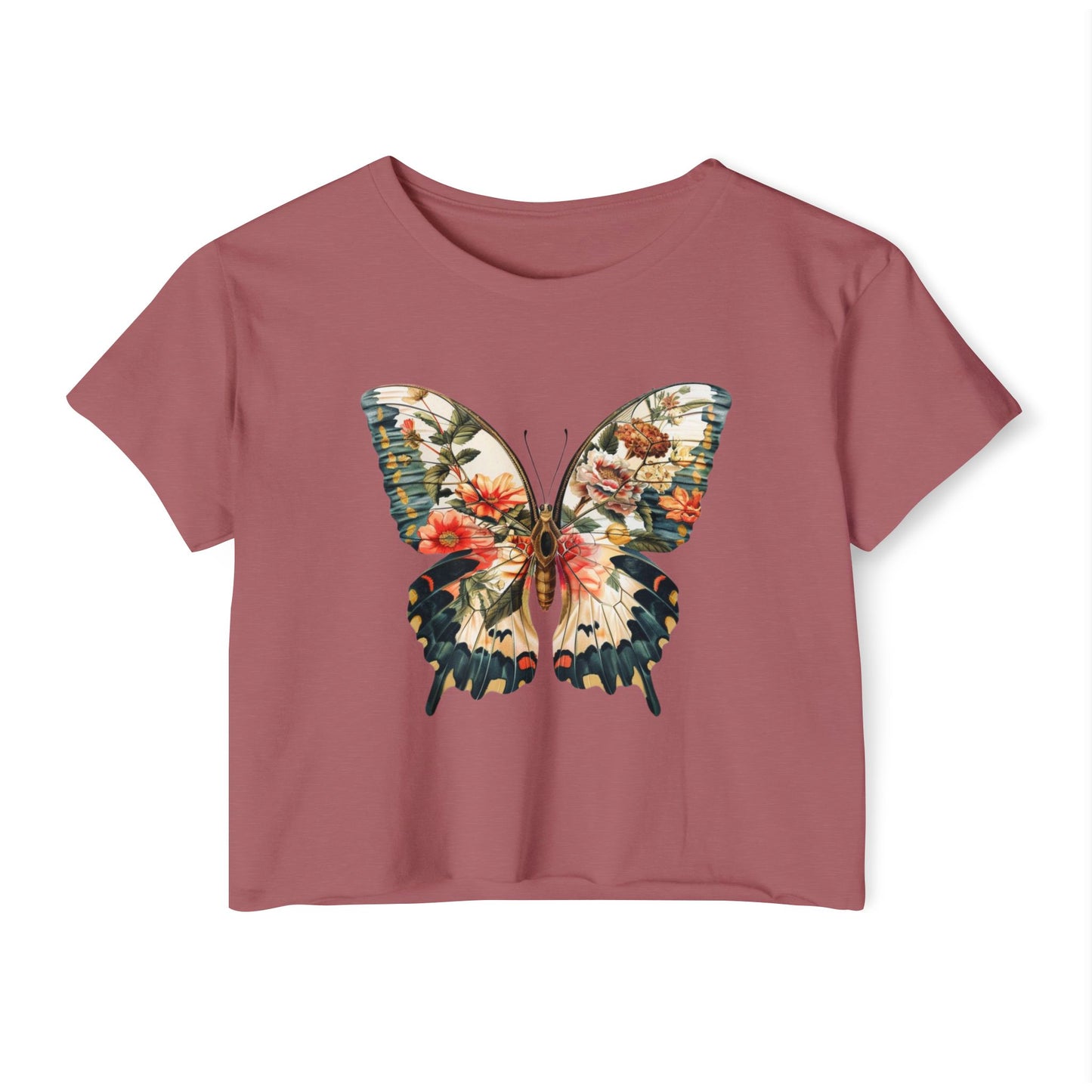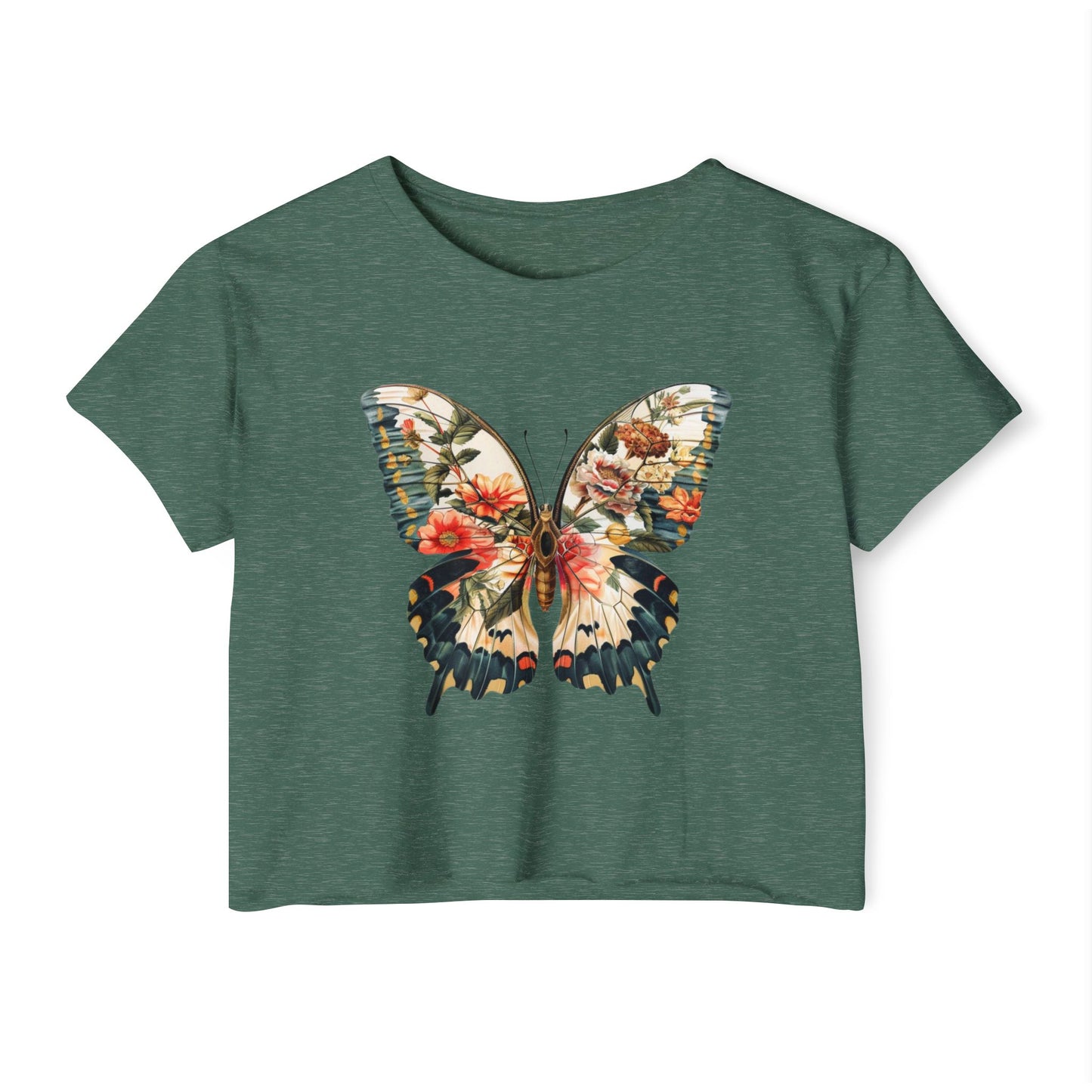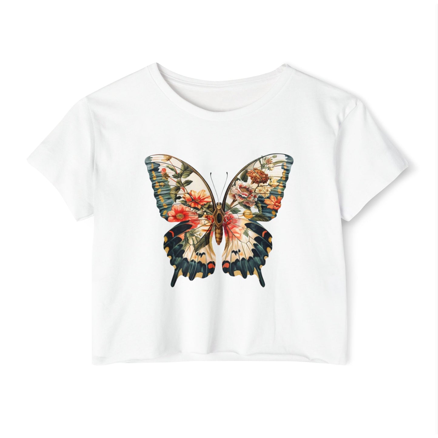 Bring your outfit to life with our Floral Butterfly Next Level Festival Crop Top – where vintage elegance meets modern festival fashion. The intricate butterfly design, filled with lush florals in warm and earthy tones, gives this piece a romantic and artistic vibe. Whether you’re dancing under the stars, strolling through a market, or pairing it with high-waisted shorts for an everyday look, this crop top is ready to be your new go-to.