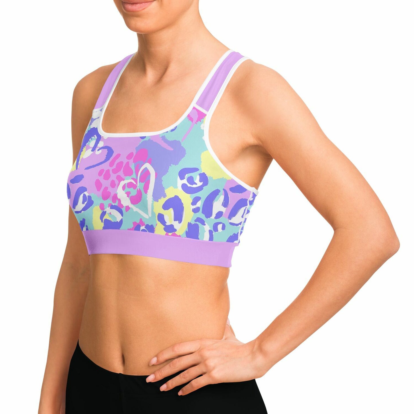 This cut & sew sports bra will be your new best friend in the gym, at yoga, or an outdoor adventure. Made from a premium moisture-wicking material that stays dry during low and medium intensity workouts. Designed to be light weight and comfortable. With a double layer front, support in the shoulder straps and a wide elastic band to ensure constant support.