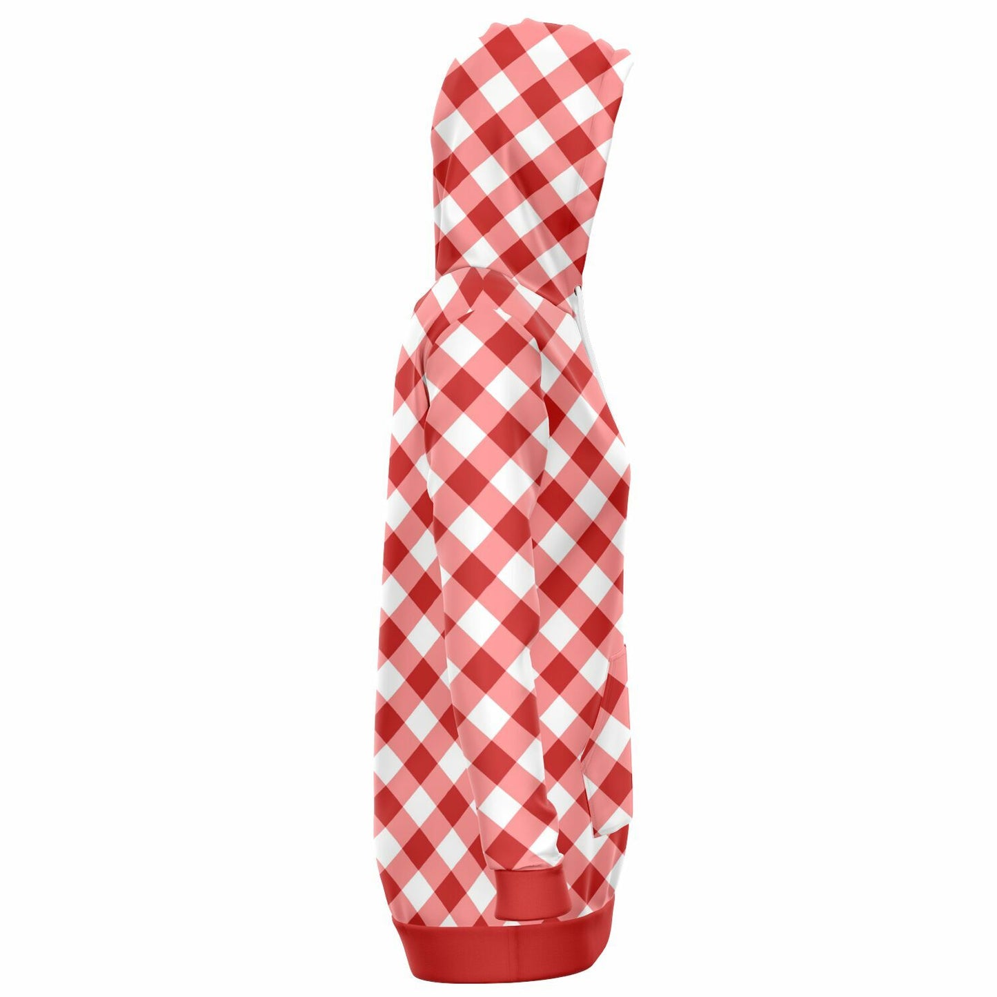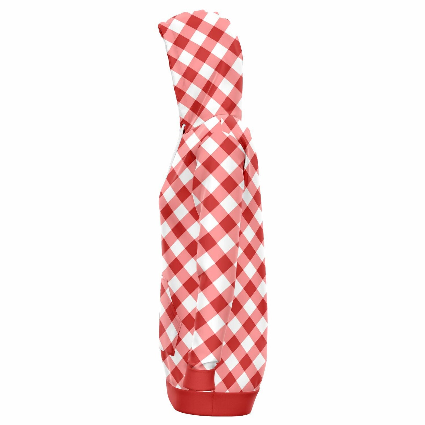 Red And White Gingham Hooded Fleece Dress