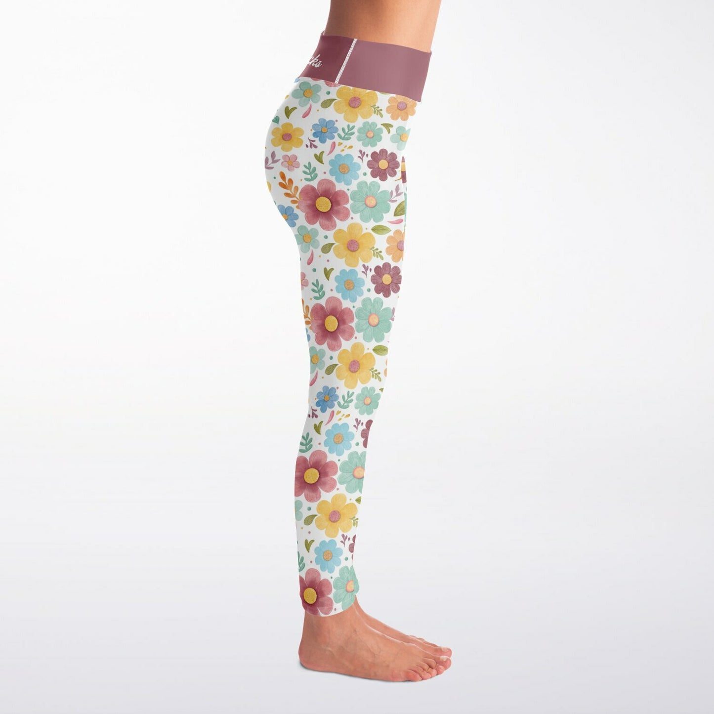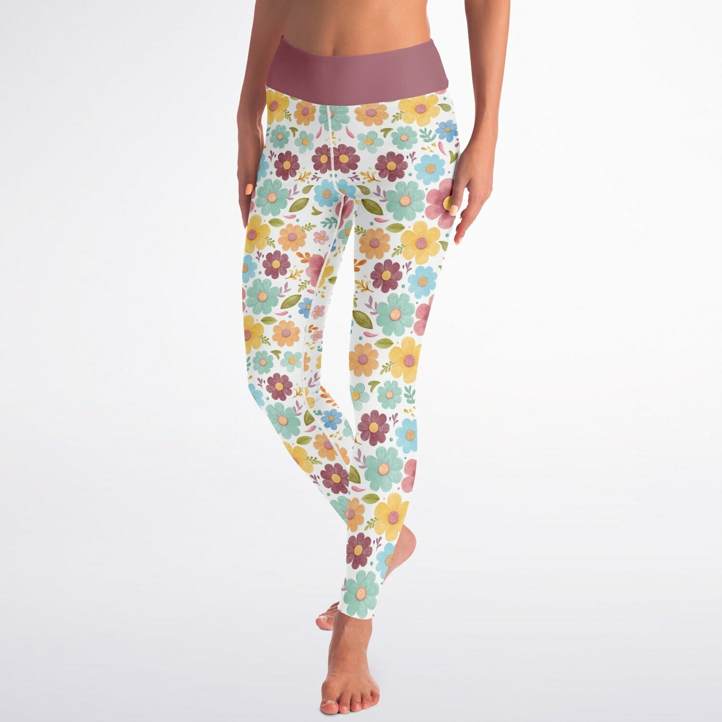 Retro Flowers Squat Proof Yoga Leggings - High-Waisted Workout & Gym Leggings