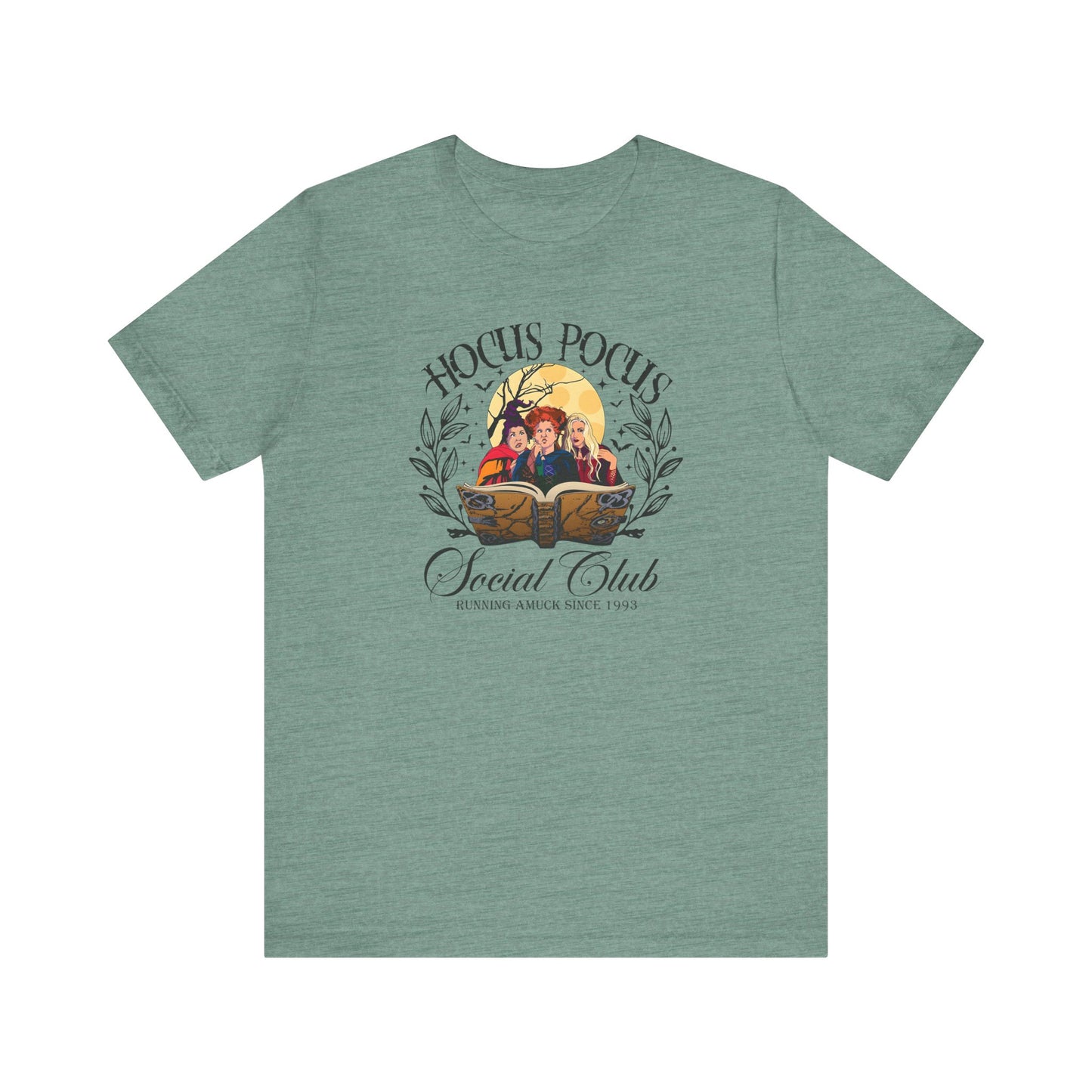 Step into the world of Hocus Pocus with our Sanderson Sisters Bella + Canvas Tee — a must-have for every fan of the cult-classic Halloween film. This ultra-soft, lightweight unisex tee features a bold graphic of Winifred, Mary, and Sarah under a glowing full moon, with their eerie spellbook front and center. Perfect for October festivities, movie nights, or adding a touch of witchy charm to your everyday look.